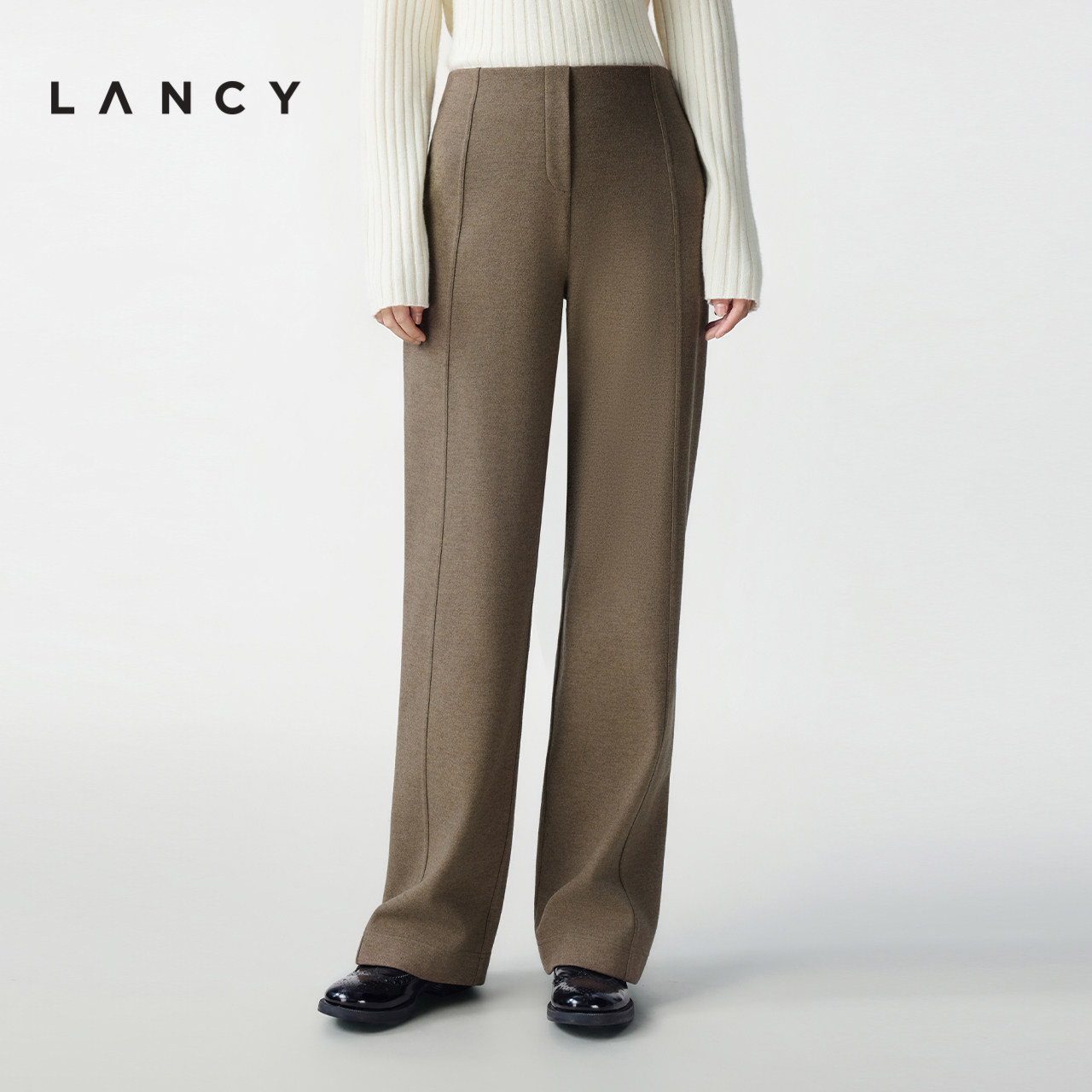 LANCY/朗姿2025秋新款高级感通勤羊毛西装外套女直筒阔腿西裤套装