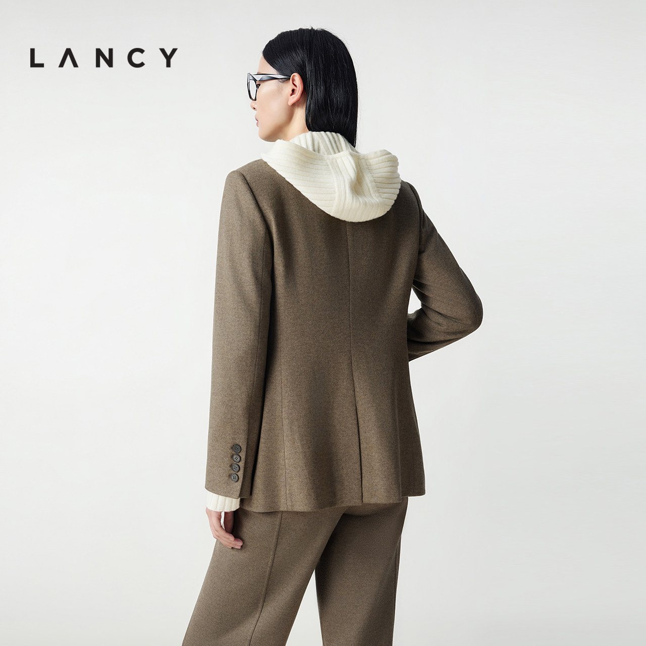 LANCY/朗姿2025冬季新款羊毛气质通勤西装套装,专为现代职场女性打造。精选高品质羊毛面料,触感柔软、保暖性强,同时具备良好的垂坠感与挺括度,彰显优雅知性气质。套装包含直筒西装外套与同色系长裤,剪裁利落,线条流畅,轻松修饰身形,适合多种场合通勤穿搭。细节处融入精致纽扣与微收腰设计,兼顾专业与时尚。无论是搭配衬衫、针织衫,还是单穿内搭,都能展现干练又不失温柔的女性魅力。LANCY以匠心工艺诠释都市女性的独立与自信,是冬季职场衣橱的理想之选。
