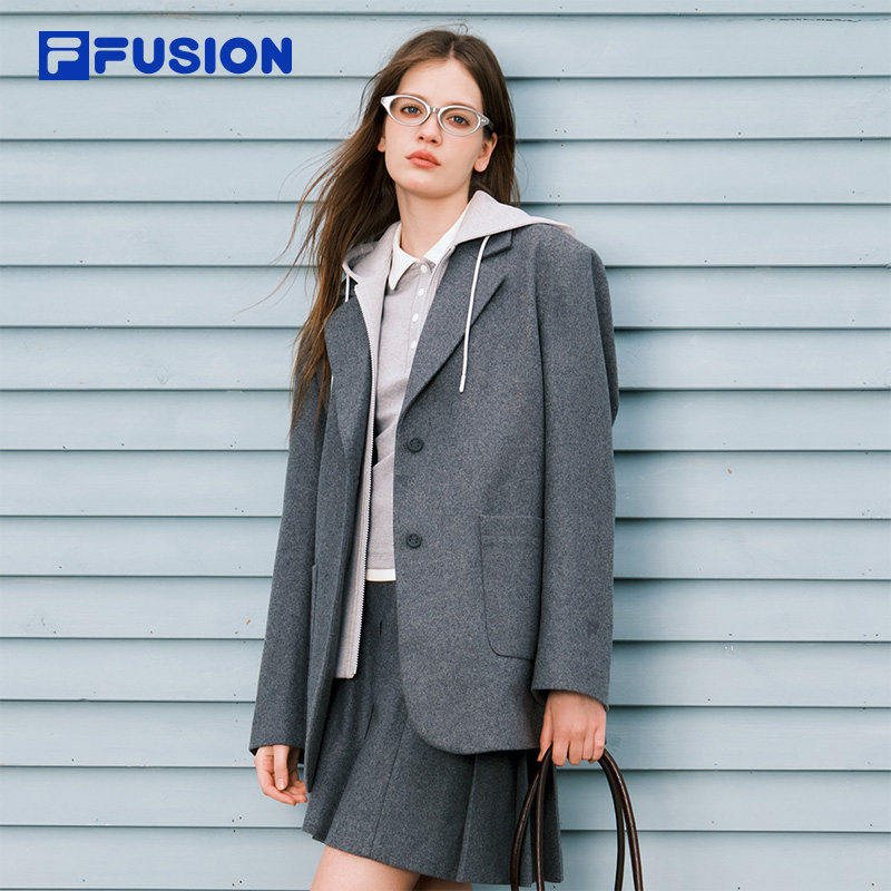 天猫FILA FUSION斐乐女装呢子外套2026春新款休闲假两件连帽西装上衣