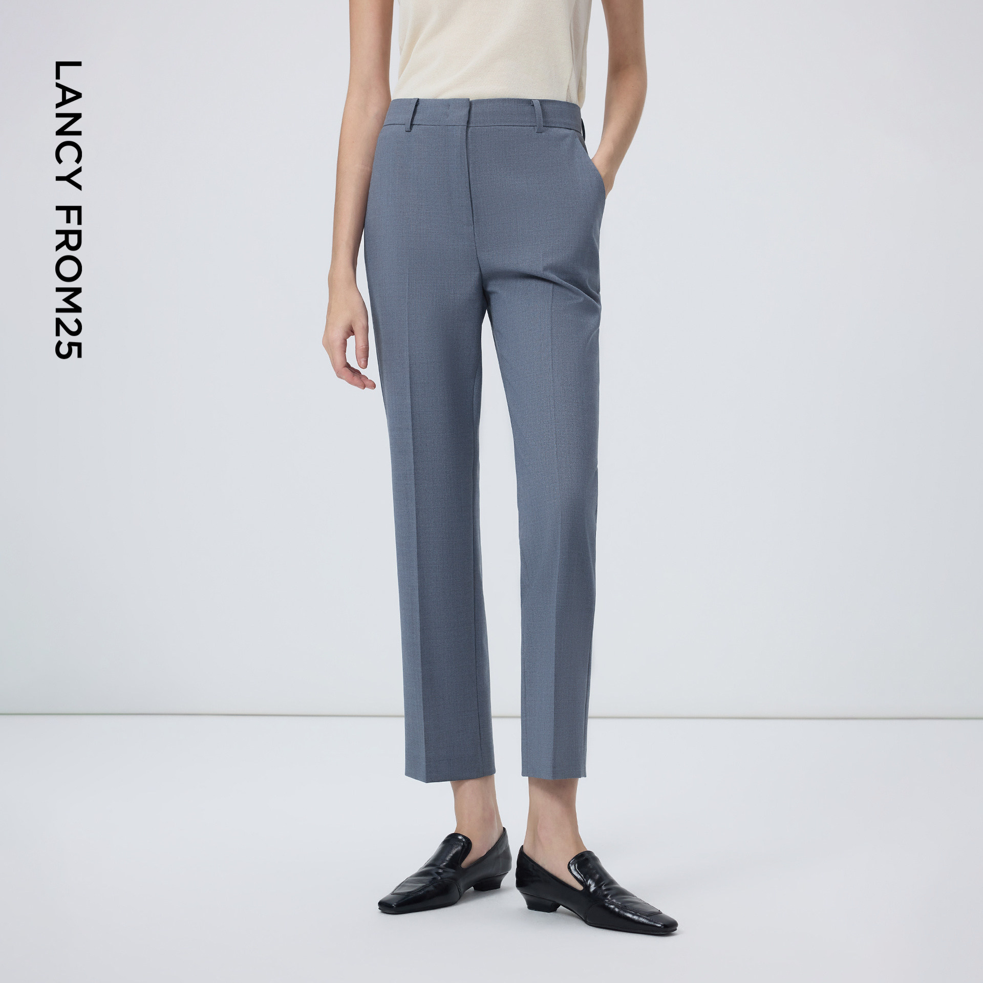 LANCY/朗姿2025秋新款高级感通勤羊毛西装外套女直筒阔腿西裤套装