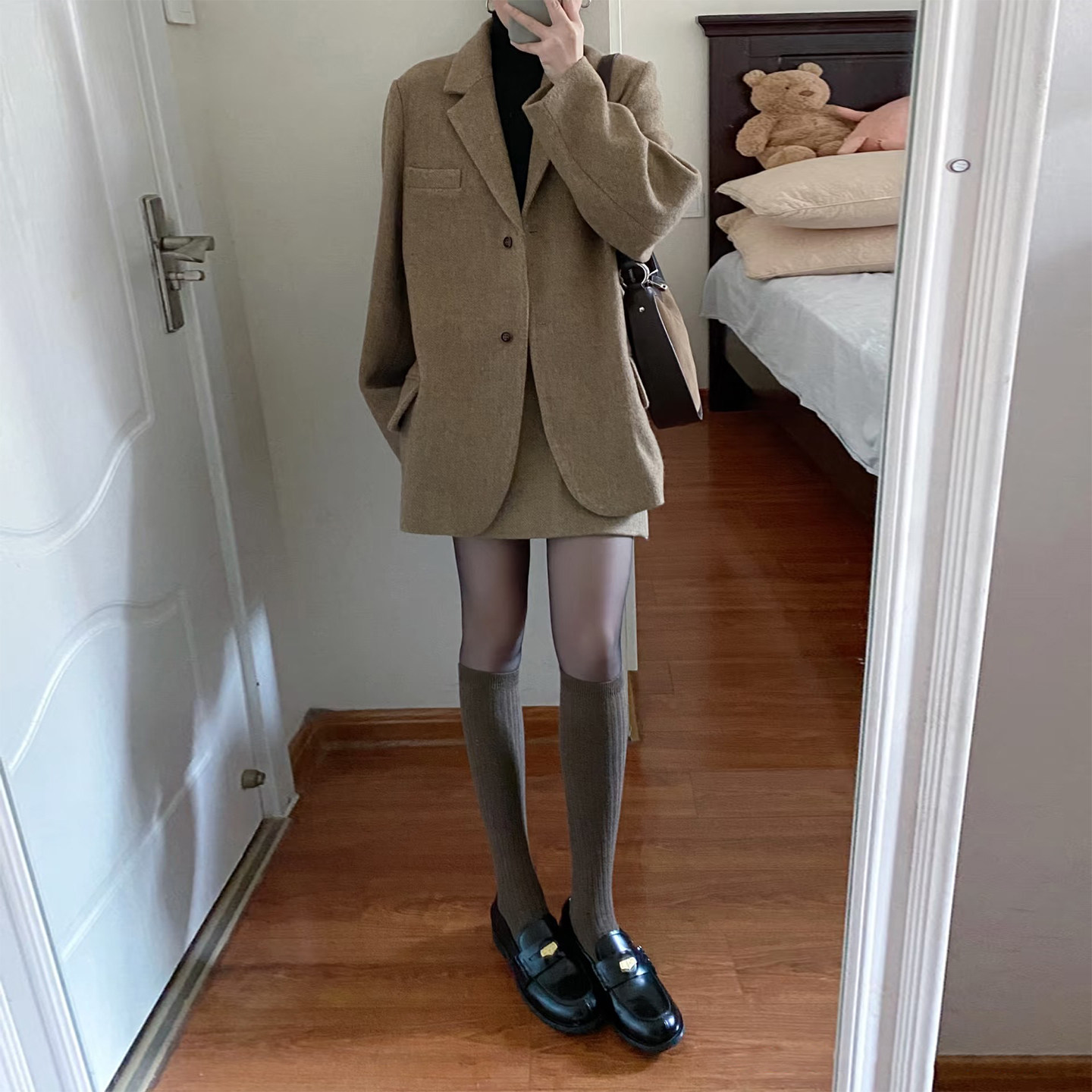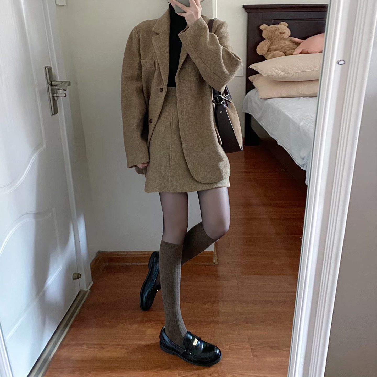 淘宝韩系老钱风西装外套半身裙两件套女秋冬新款高级感小个子套装穿搭