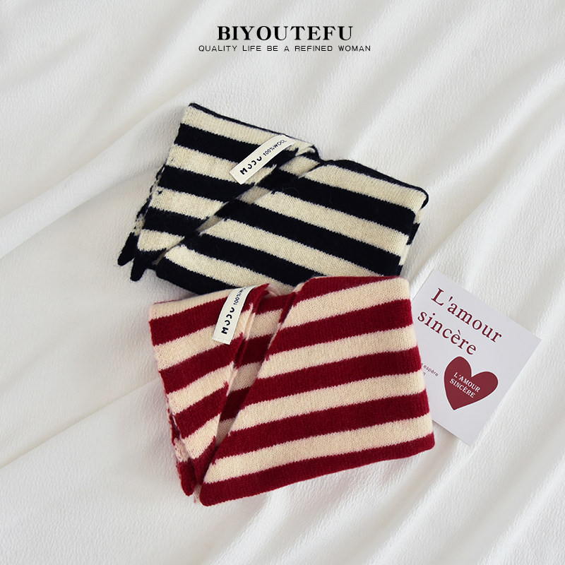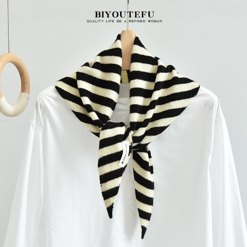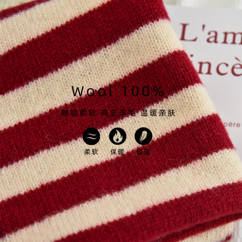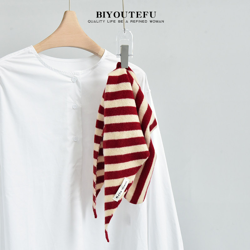 天猫100%羊毛三角巾条纹红白披肩女外搭针织红色保暖小围巾领巾批肩