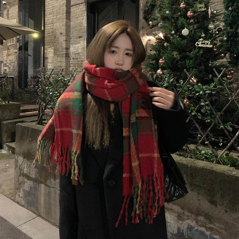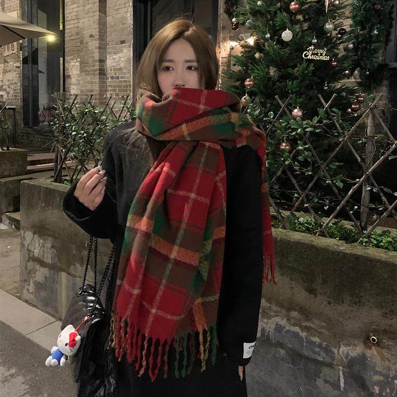 淘宝圣诞新年围巾红色格子女冬季韩系氛围感保暖加厚情侣围脖2025新款
