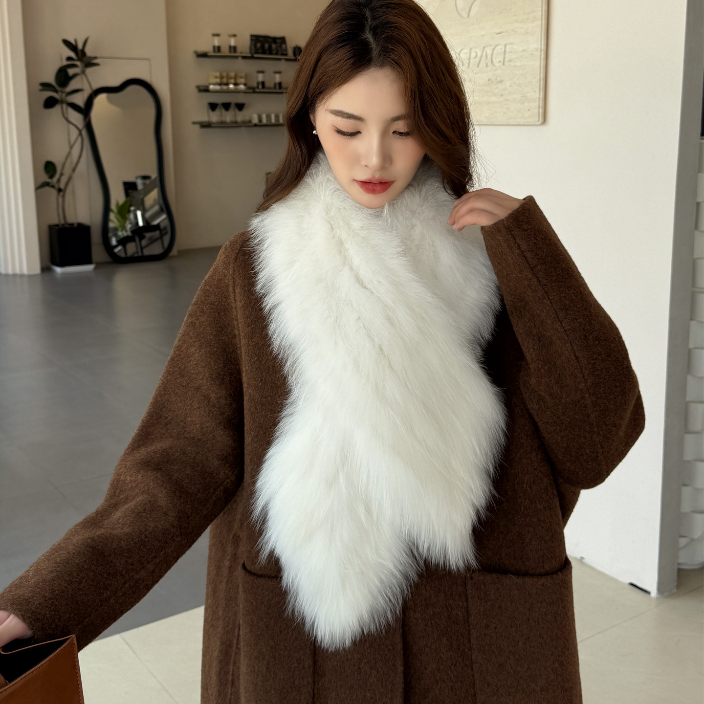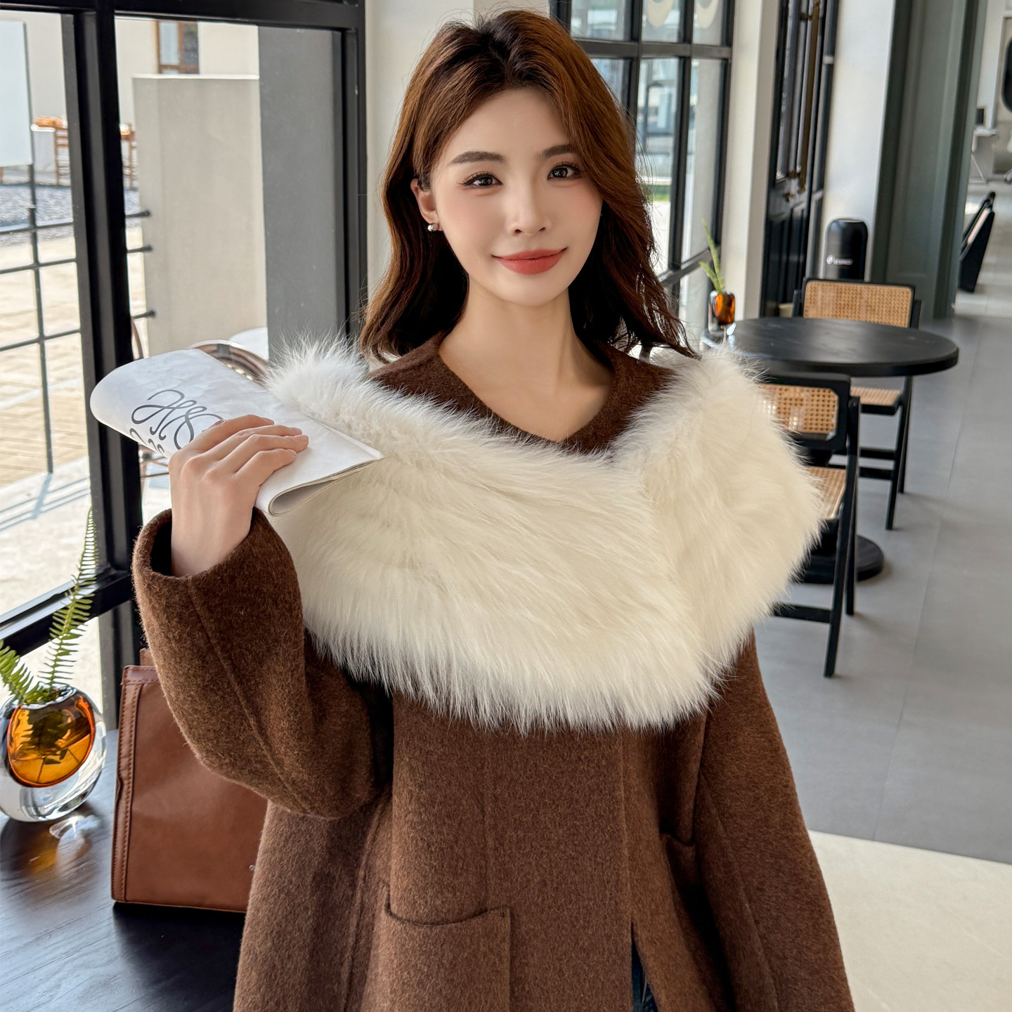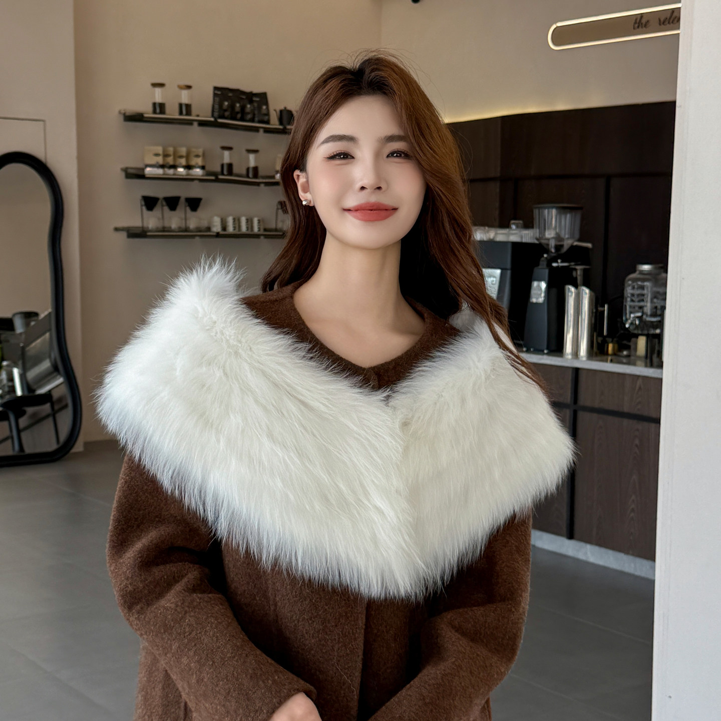 淘宝薇儿卡皮草秋冬新款狐狸毛领礼服一字肩小披肩米白色毛毛围巾