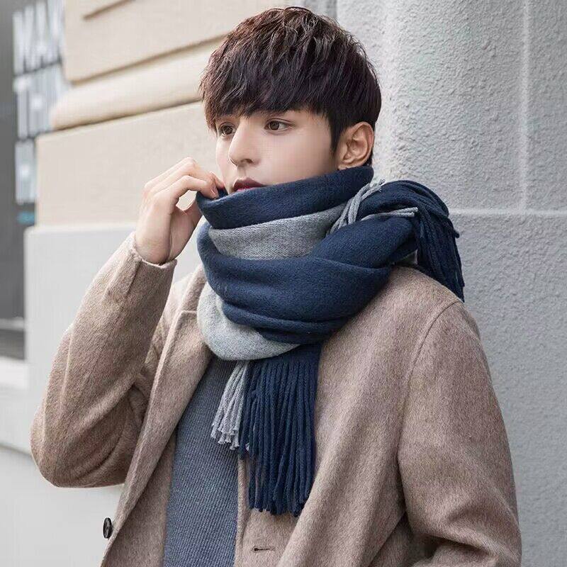 天猫围巾男女冬季韩版百搭保暖围脖拼色针织毛线披肩加厚护颈情侣围巾