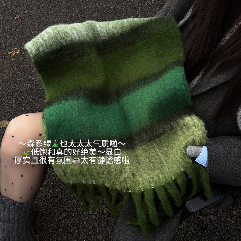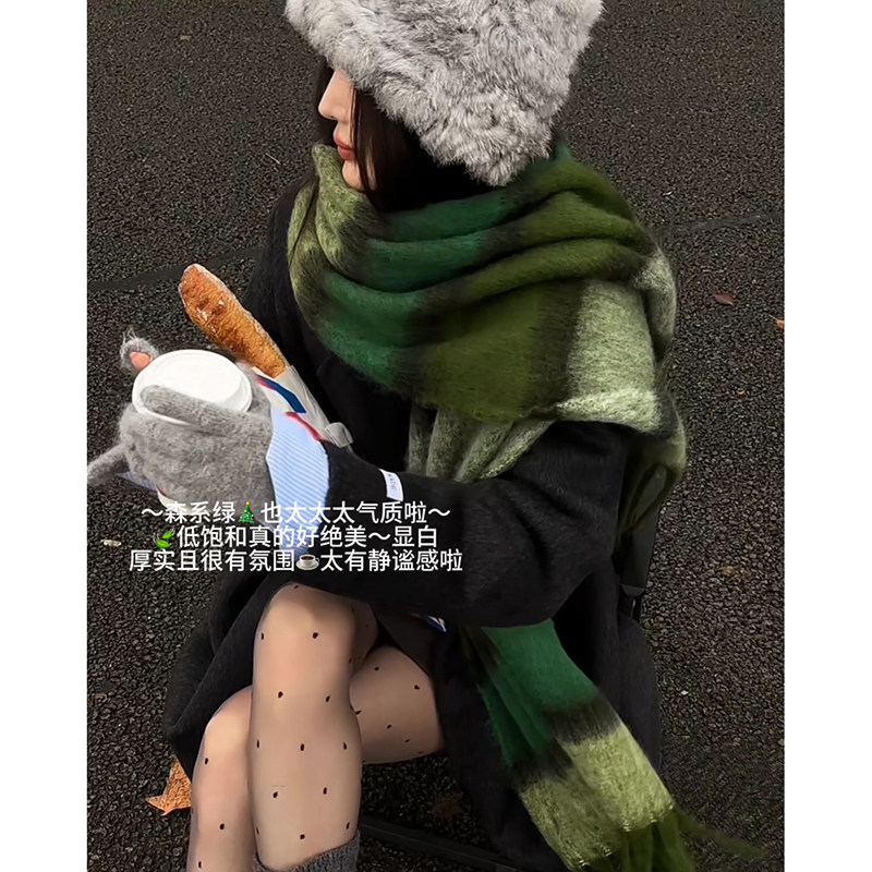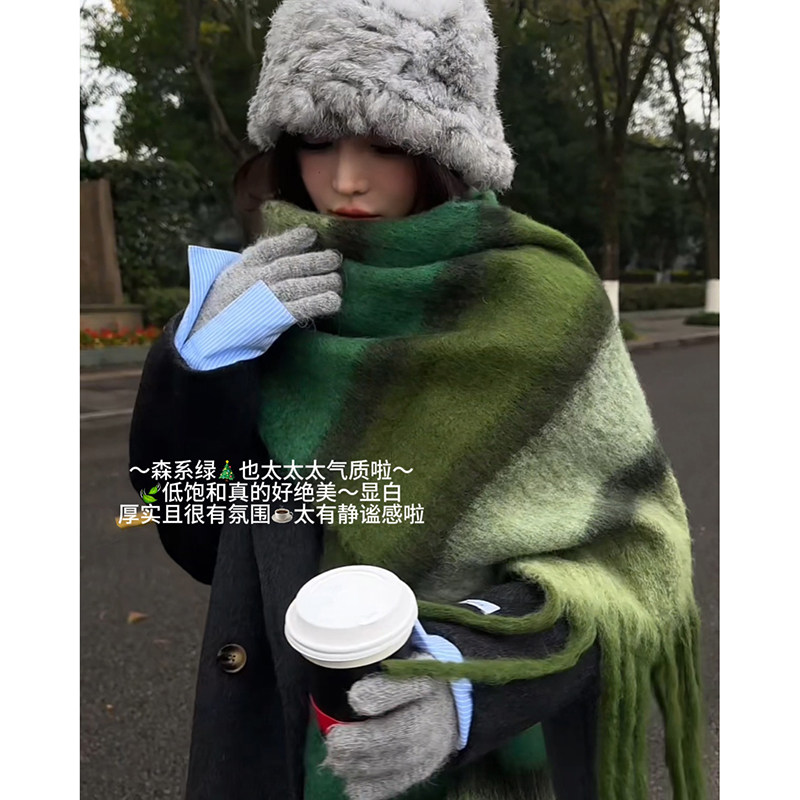 淘宝复古森林绿色仿羊绒围巾女冬季2025新款学生流苏保暖百搭披肩围脖