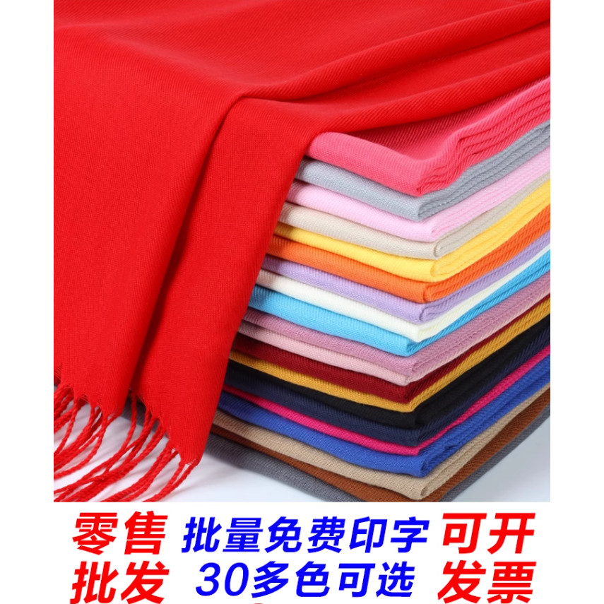 天猫中国红围巾定制logo刺绣公司年会开业同学聚会活动大红色围脖定做