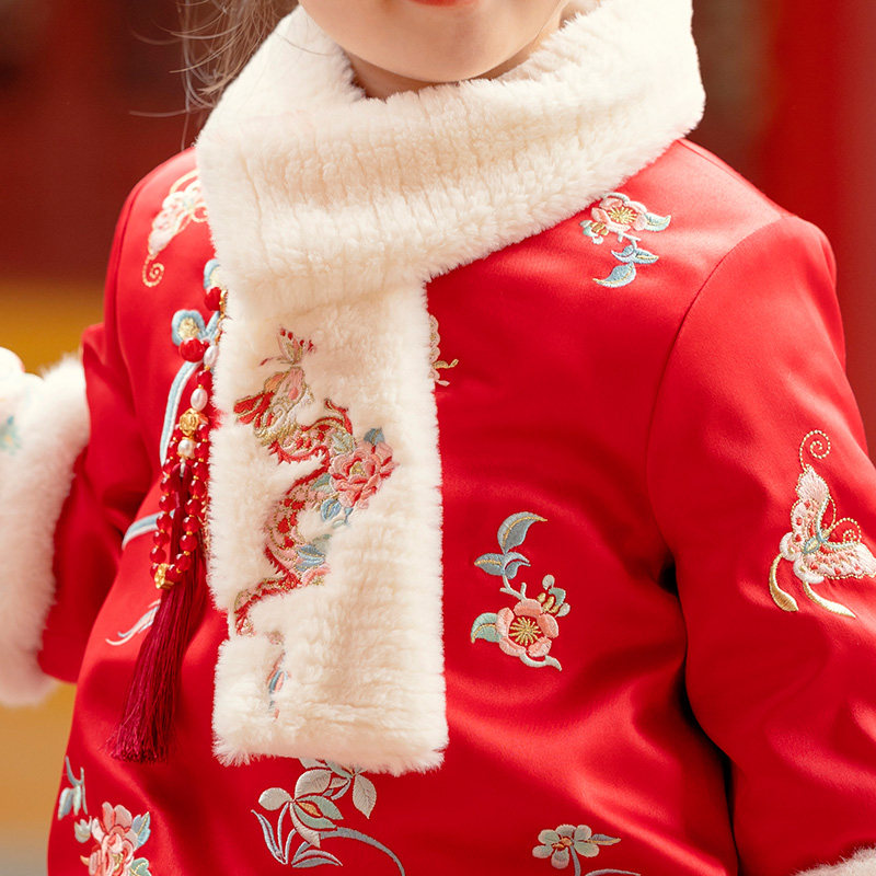淘宝儿童冬季围巾男女童宝宝百搭仿雪貂绒毛领保暖中国风复古刺绣围脖