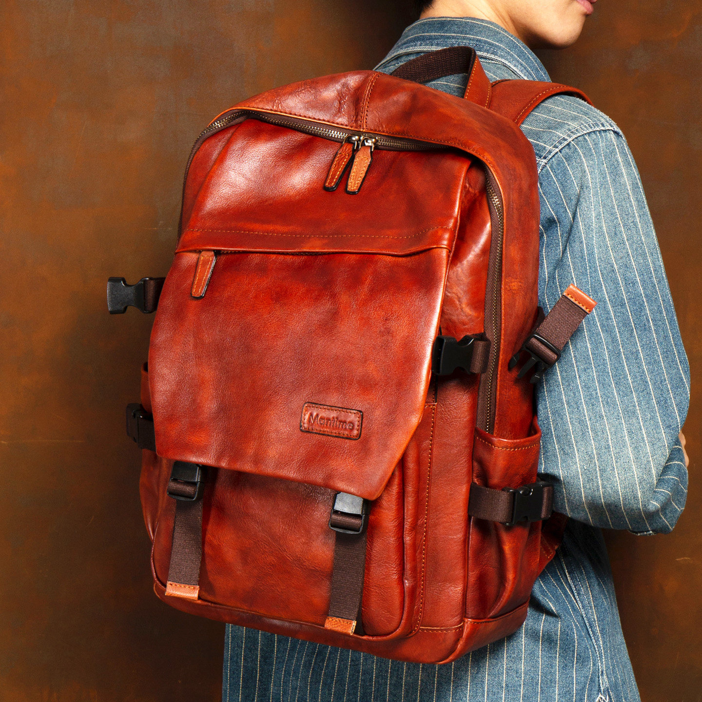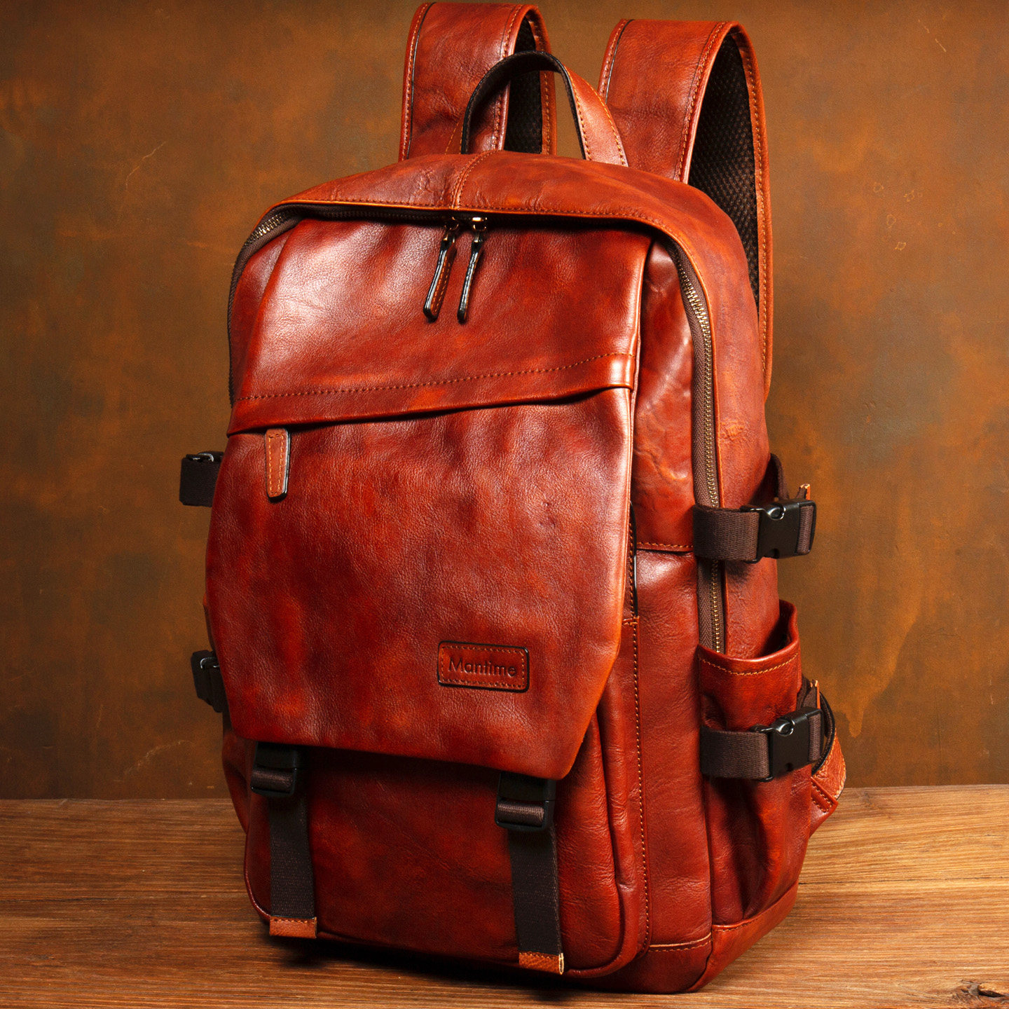 淘宝慢时光原创手工擦色植鞣牛皮双肩包大容量真皮电脑包户外登山背包