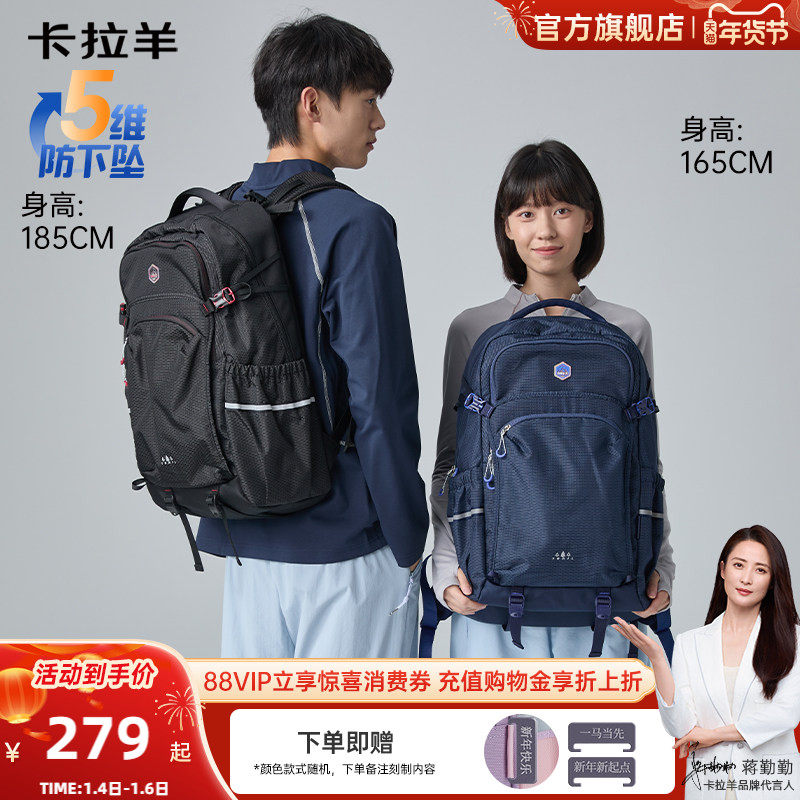 卡拉羊大容量40升双肩包,专为户外旅行与登山设计,兼顾轻便与耐用。采用防泼水面料,有效抵御小雨和潮湿环境,保护包内物品干燥。科学背负系统搭配防下坠设计,分散肩部压力,长时间背负更舒适。男女通用款式,简约时尚,适合徒步、旅行、露营等多种场景。多仓位布局合理,主仓宽敞,侧袋便捷,轻松收纳衣物、装备与日常用品。自重轻,折叠后体积小,出行携带灵活。无论是山野探险还是城市出行,这款背包都以实用性与舒适性赢得青睐,是户外爱好者的理想之选。