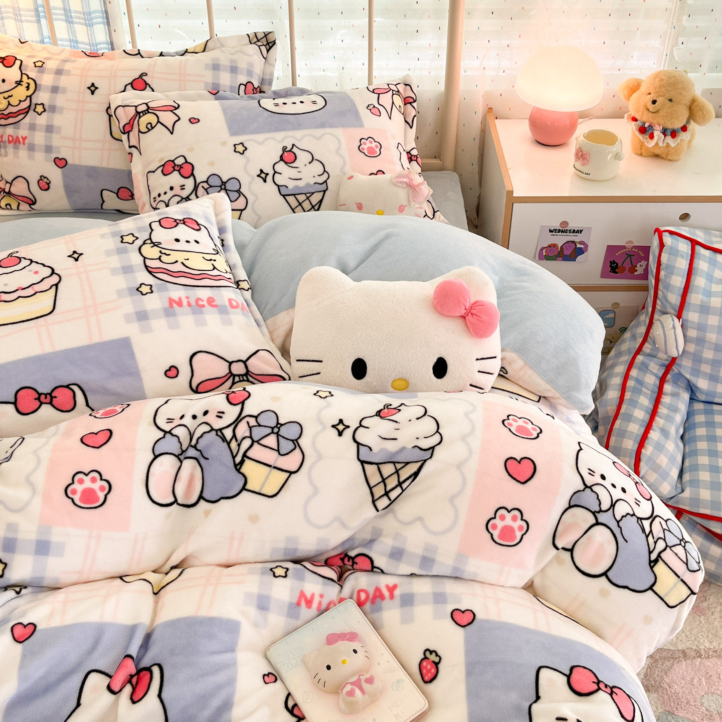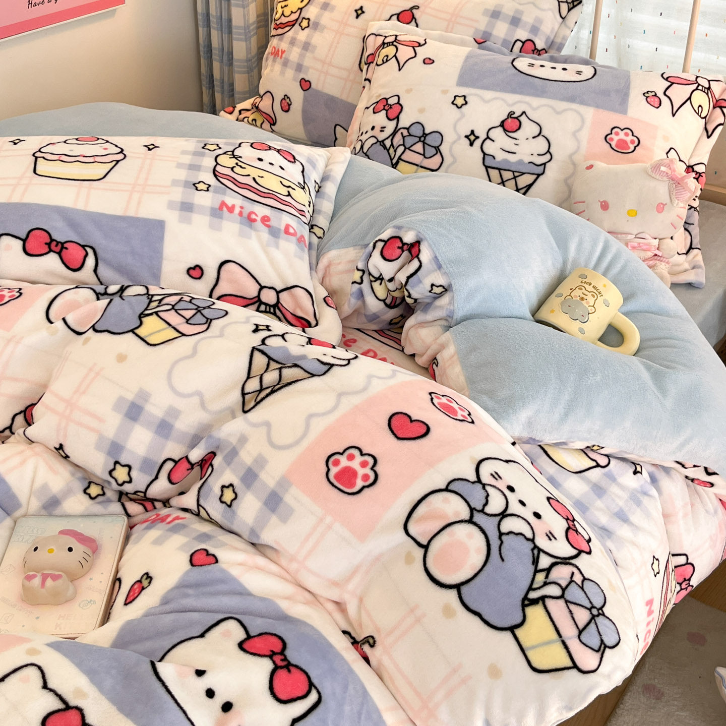 天冬季儿童珊瑚牛奶绒被套单件幼儿园宝宝三丽鸥玉桂狗加绒加厚被罩