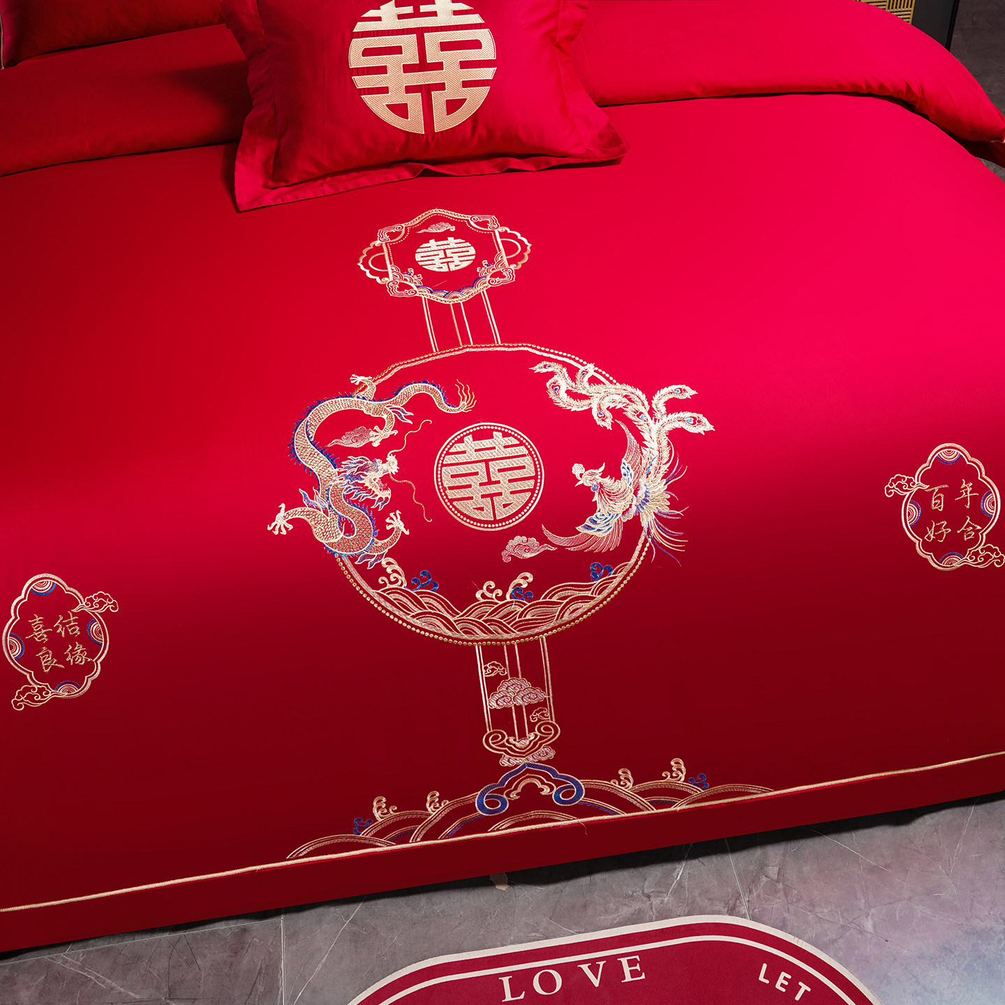 淘宝2026新款中式大红色结婚床上四件套高档婚庆被套床单婚房陪嫁喜被