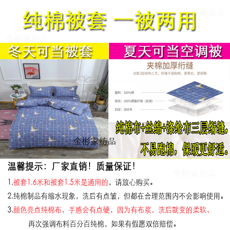 淘宝被套单件套被 纯棉夹棉两用空调被200x230带拉链冬季100%全棉被罩
