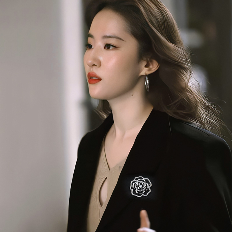 天猫简约山茶花胸针高档女奢华气质胸花独特设计高端精致时尚别针配饰