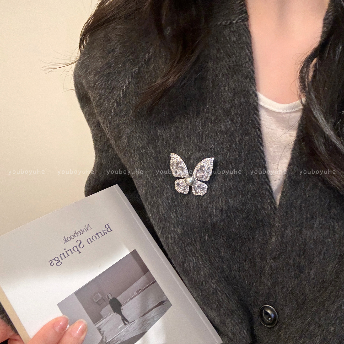 淘宝高级感金色蝴蝶珍珠胸针女轻奢精致配大衣毛衣胸花个性别针配饰品