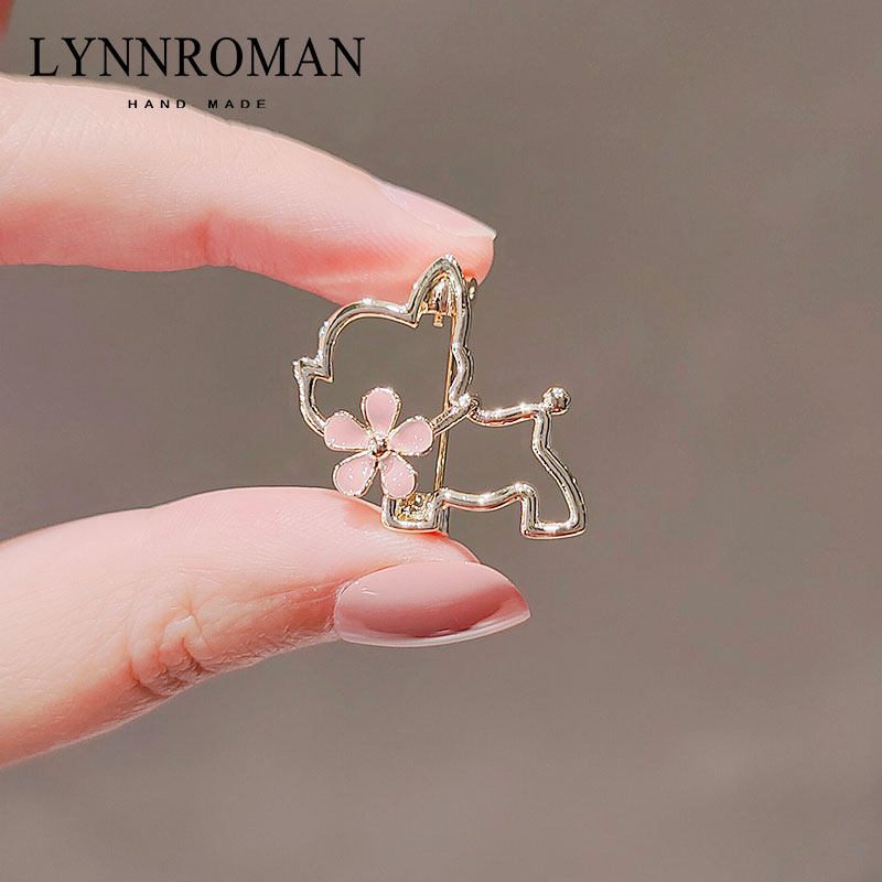 天猫LYNNROMAN日系金属镂空小狗胸针可爱小花别针领针毛衣西装配饰女