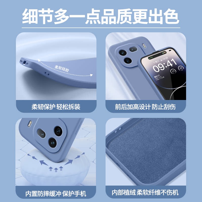 淘奈斯耐脏奶蓝色15适用oppoReno13/12手机壳11液态硅胶Reno14pro全包边10防摔FindX8s高级感X7软糯+网红findx9
