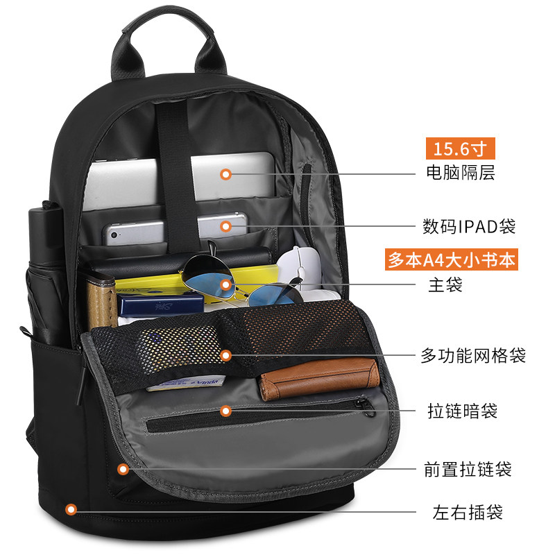 淘男女通用商务尼龙轻便防水大容量双肩包新款电脑背包通勤旅行书包