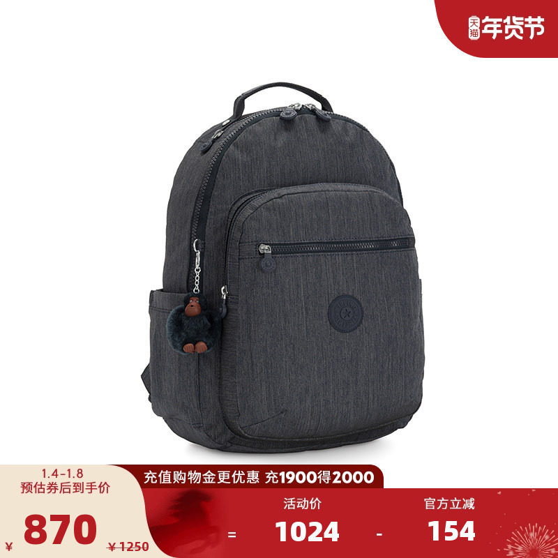 天猫Kipling2025春夏新款首尔包15.6寸双肩包电脑包学生书包|SEOUL