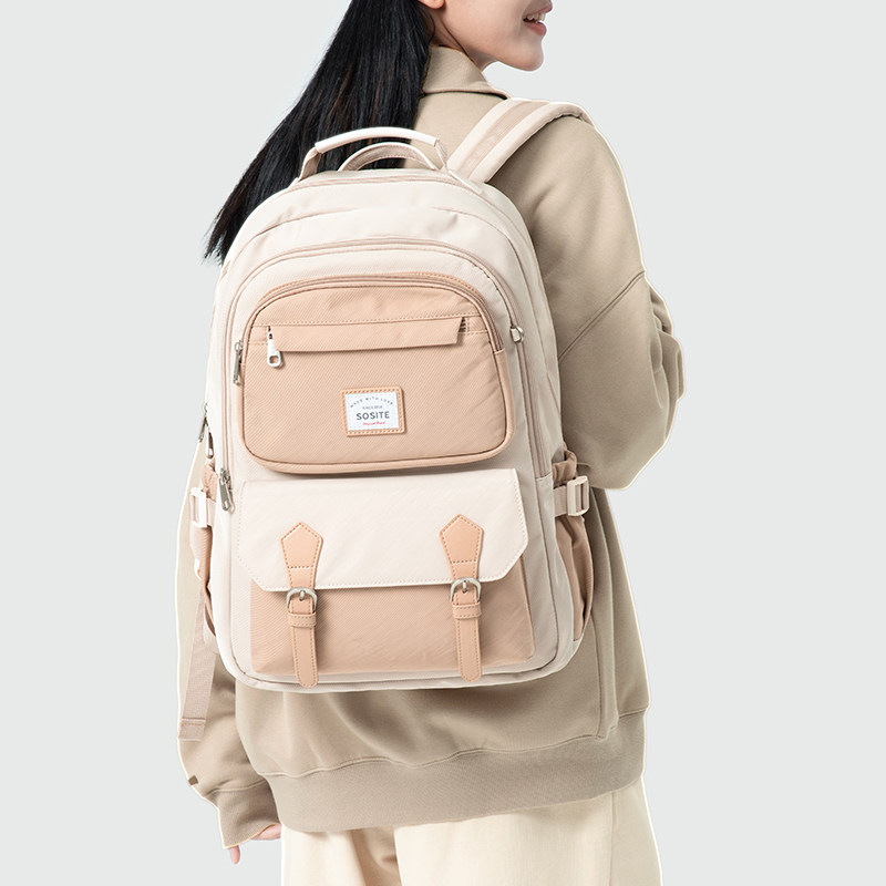 SOSITE新款马卡龙双肩包女学生大容量百搭电脑背包高颜值减负书包