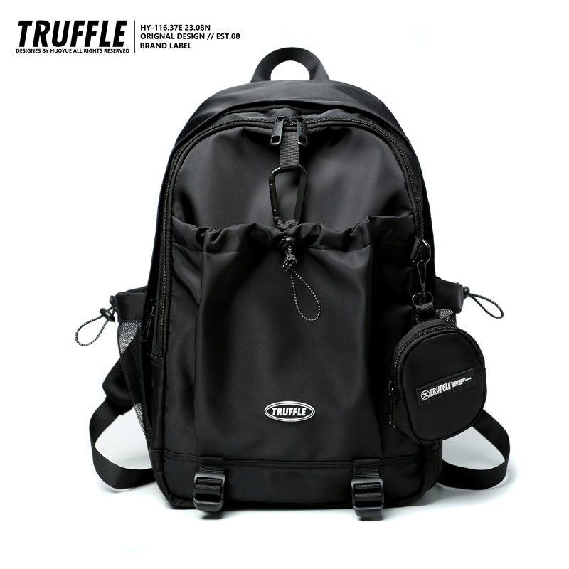 TRUFFLE潮牌双肩包,专为追求个性与实用的学生及年轻群体设计。男女通用款式,简约时尚的外观融合潮流元素,适合高中、大学生日常上课及短途旅行使用。大容量主仓可容纳15.6英寸笔记本电脑,内设多功能隔层,轻松收纳课本、文具、水杯等物品。加宽透气肩带与背部缓冲设计,减轻负重压力,长时间背负更舒适。精选耐磨防泼水面料,结实耐用,应对多变天气。无论是校园通勤还是户外出行,TRUFFLE双肩包都以高颜值与强实用性,成为年轻一族的出行新选择。