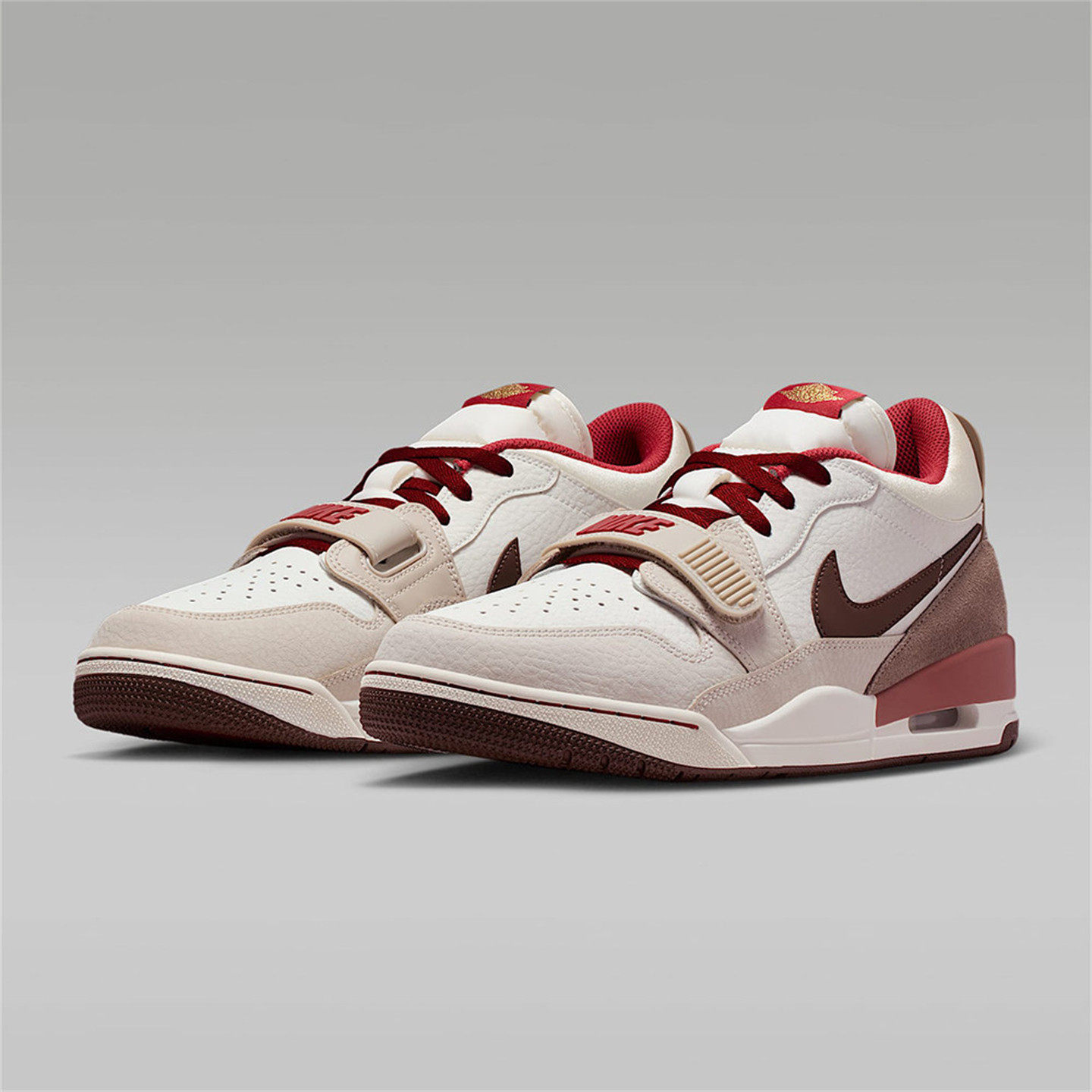 NIKE耐克男鞋JORDAN LEGACY 312 马年限定款(IQ9783-121)融合经典篮球基因与中国生肖文化,致敬农历马年。鞋身以白色为主调,搭配金色与酒红细节,象征吉祥与活力。设计融合Air Jordan 1、3、4等多代经典元素,中底搭载全掌Air缓震科技,提供卓越回弹与支撑。鞋舌与后跟融入马年专属图案与刺绣标识,彰显独特纪念意义。鞋面采用优质皮革与透气网布结合,兼顾质感与舒适度。整体造型兼具复古韵味与现代性能,既是球场利器,也是潮流单品,限量发售,极具收藏价值。