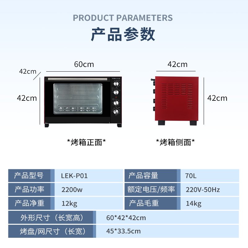 天猫礼悦家商用大容量烤箱70L风平一体家用蛋糕月饼烘焙专用热风烤箱