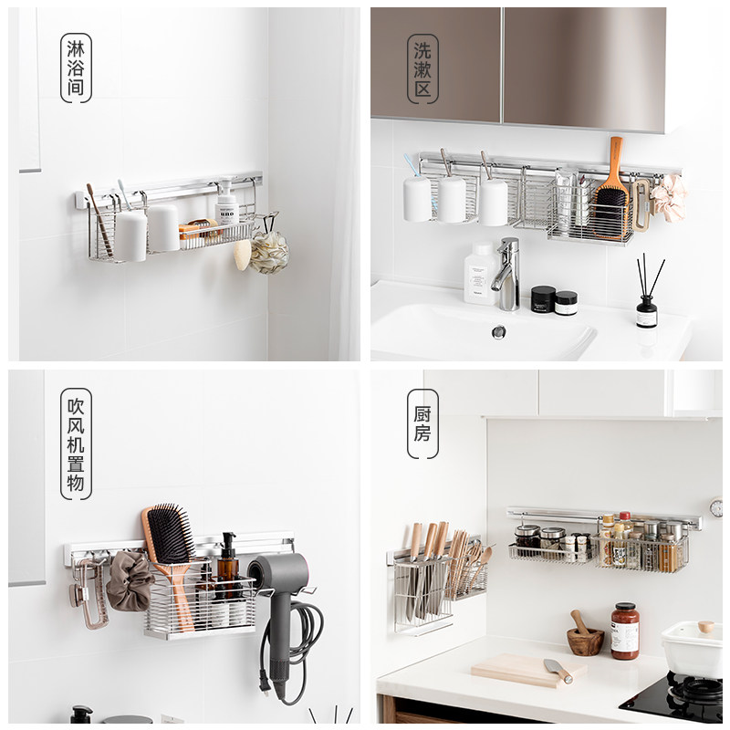 天猫御仕家不锈钢电吹风机置物支架卫生间免打孔风筒浴室壁挂梳子收纳