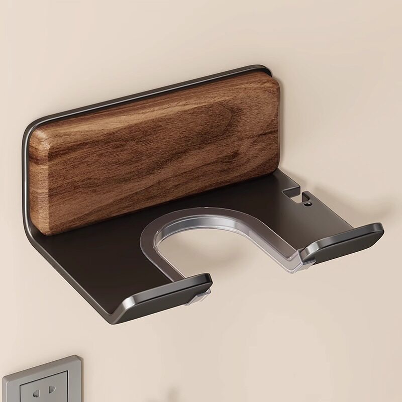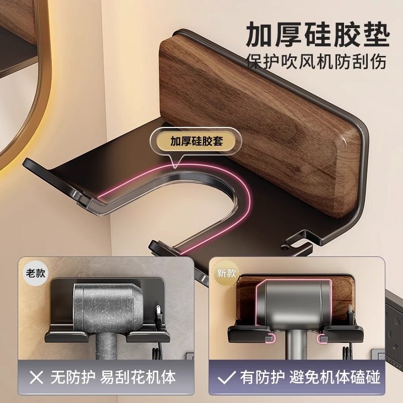 胡桃木免打孔吹风机置物架壁挂式多功能收纳架浴室收纳神器风筒挂