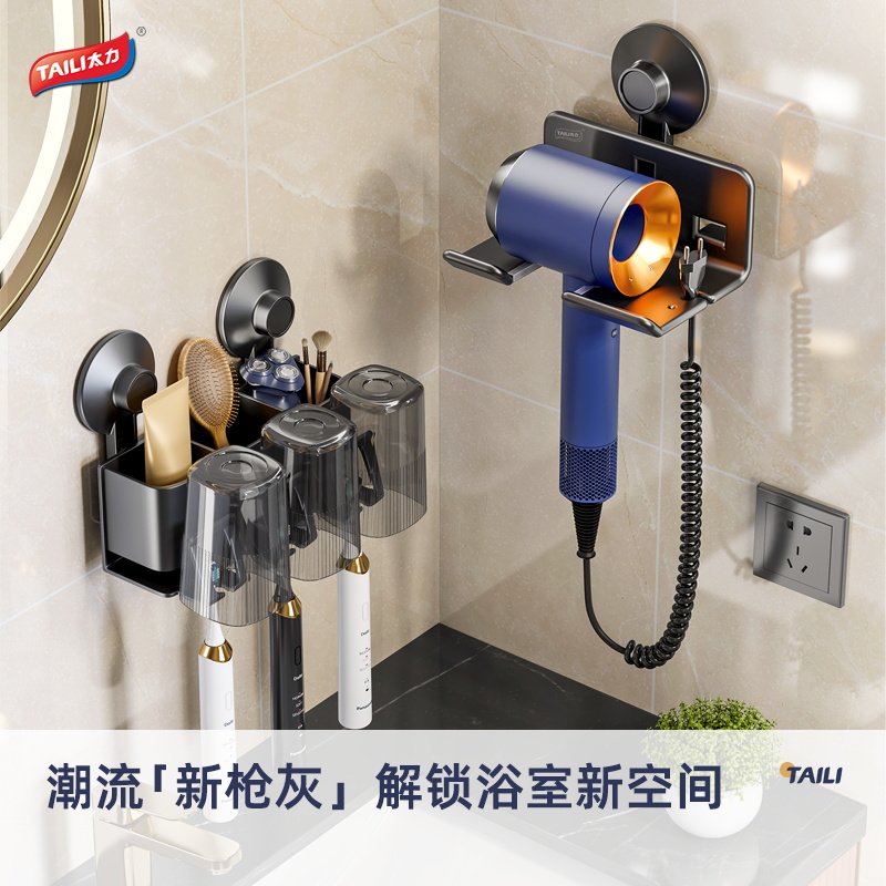 天猫太力吹风机支架浴室免打孔吸盘壁挂置物架卫生间电吹风风筒机挂架