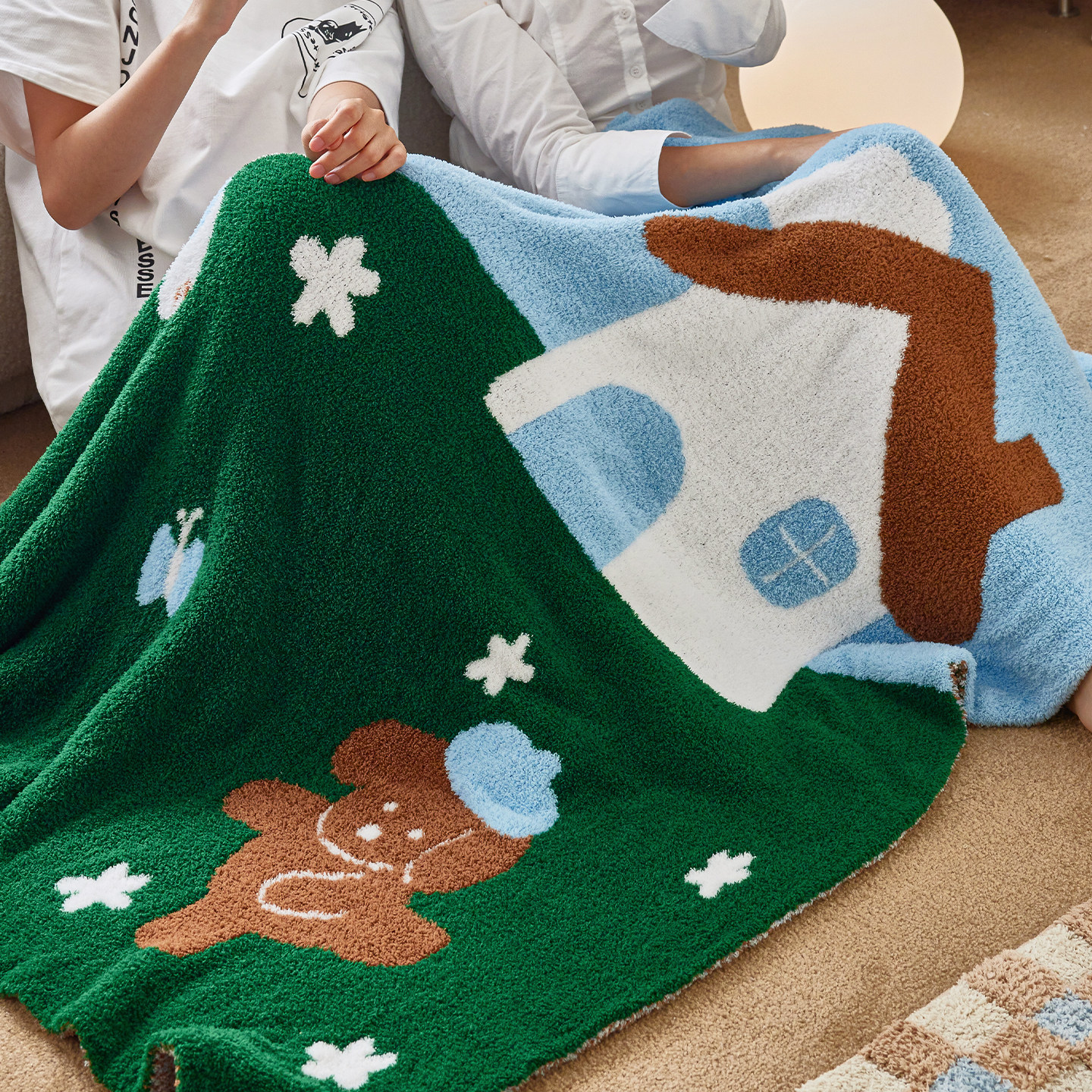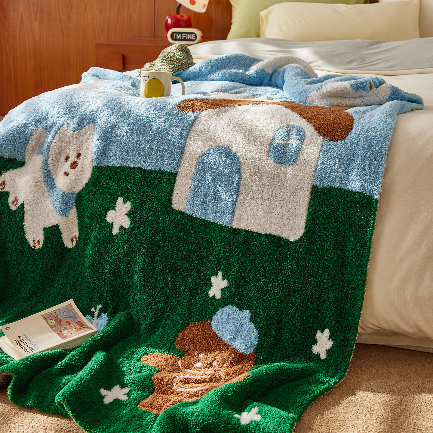 淘宝卡通针织半边绒毛毯可爱装饰沙发毯办公室单人空调毯儿童午睡毯子