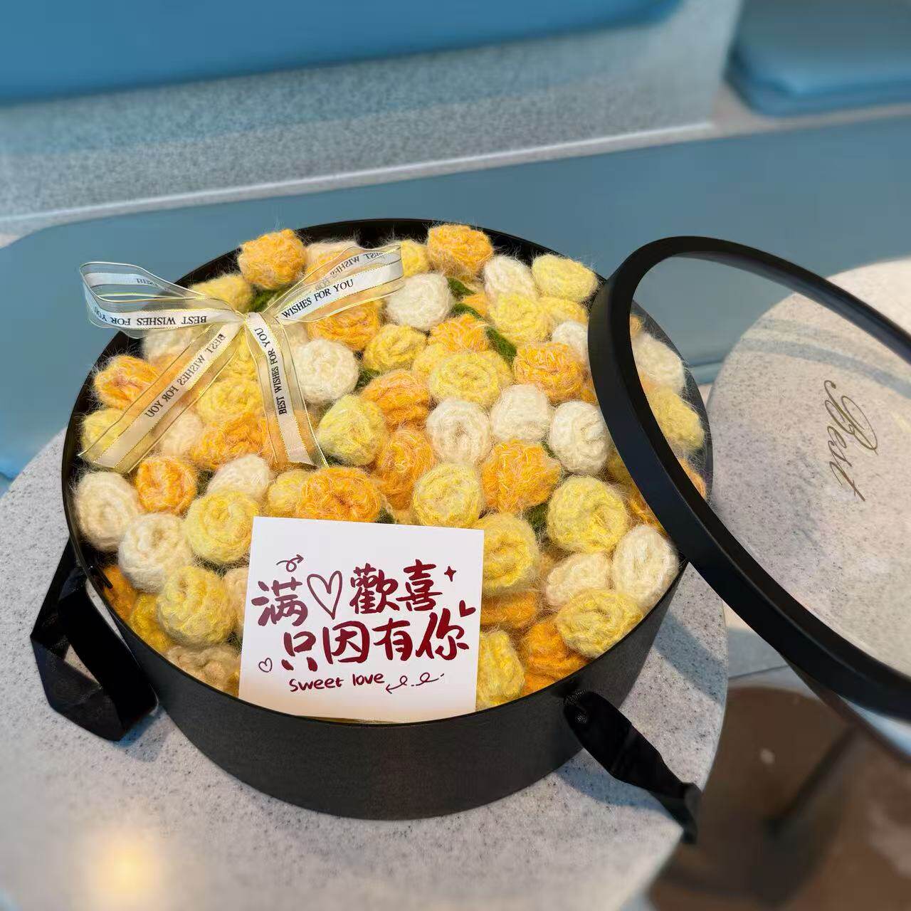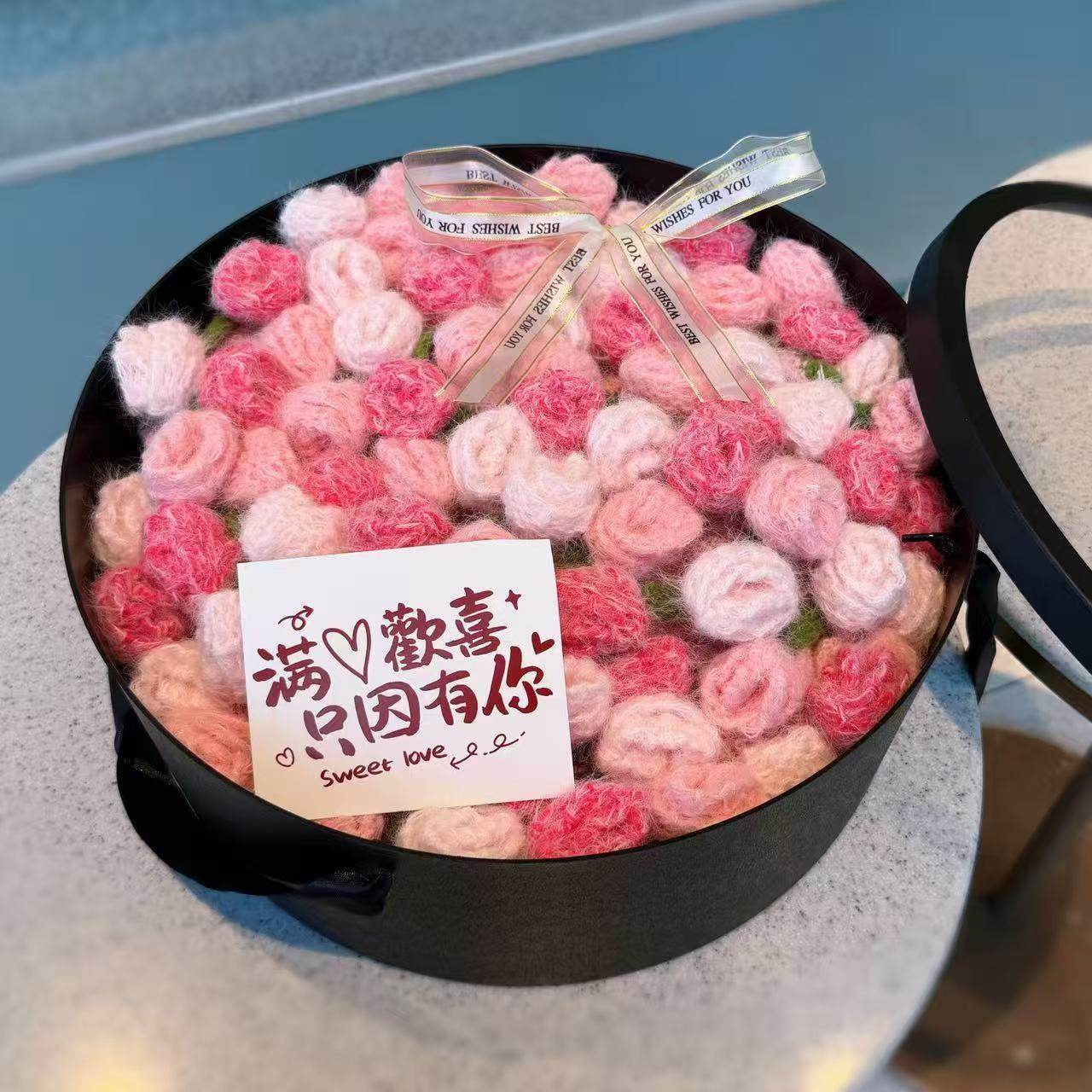 淘宝玫瑰花束毛毯子成品手工编织鲜花朵披肩送情人节女生闺蜜生日礼物