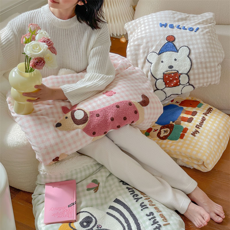 淘宝韩式创意少女心可爱萌宠牛奶绒毛毯卡通卧室客厅沙发休闲毯子