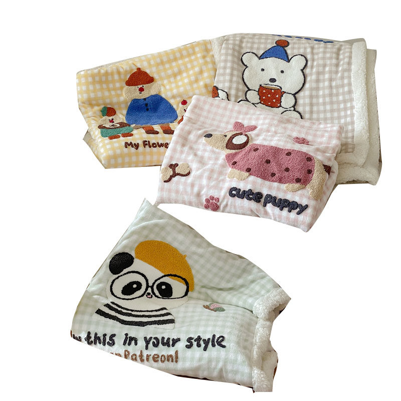 赫拉牛奶绒贝贝绒三层夹棉毛毯空调毯多功能盖毯午睡毯办公室可爱