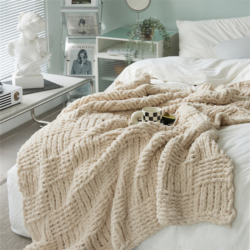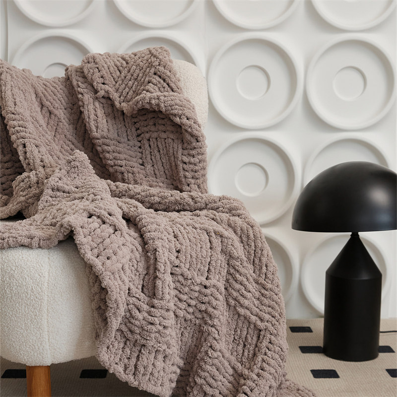 淘宝北欧简约风纯色雪尼尔毛毯沙发盖毯空调保暖办公室装饰毯子床尾毯