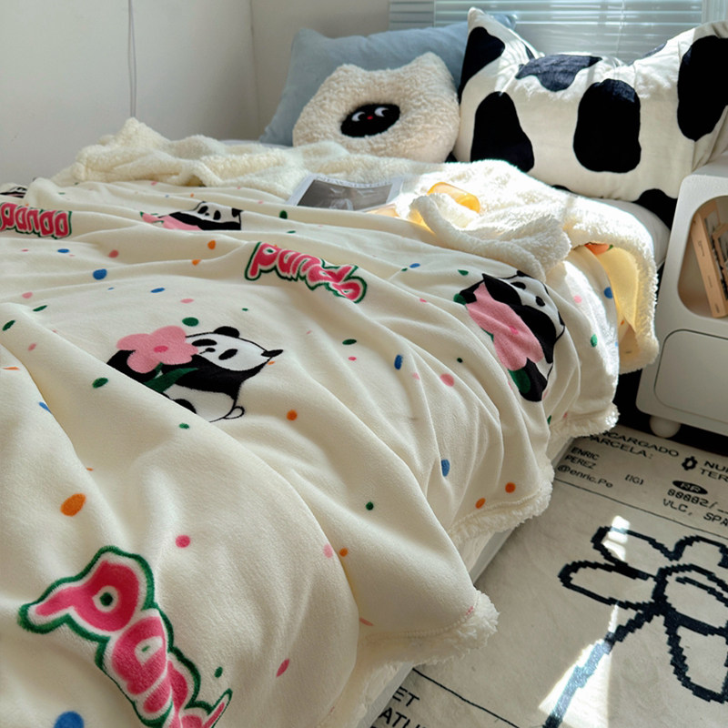 库洛米加厚牛奶绒双面印花毛毯冬季珊瑚绒学生盖毯家用床单小毯子