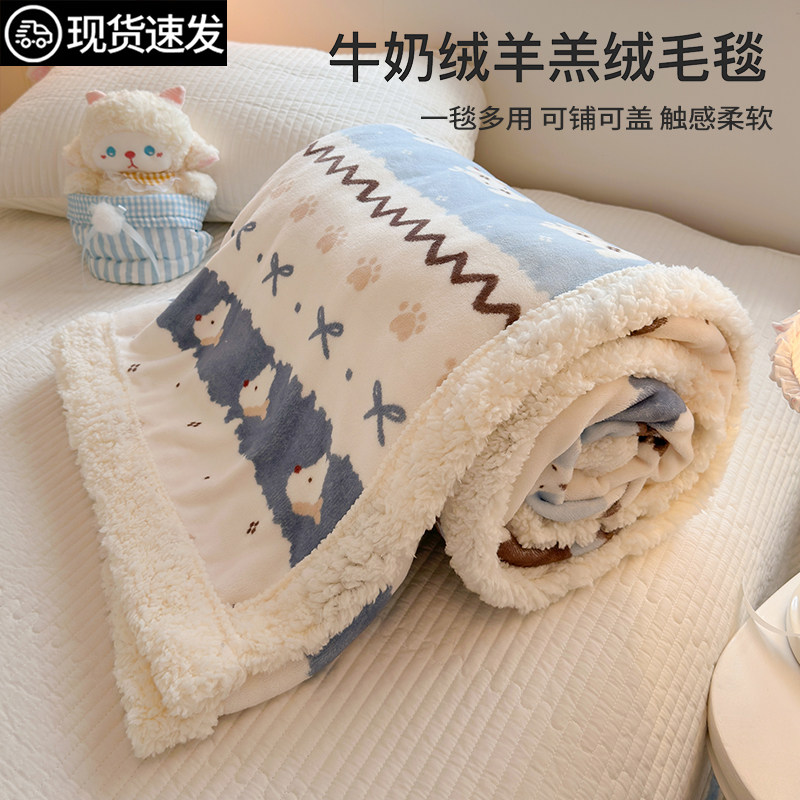 2025秋冬新款多功能加厚牛奶绒羊羔绒多功能毛毯空调毯可爱儿童女