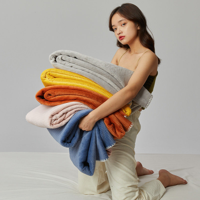加厚泡泡牛奶绒风毛毯兔毛绒冬季办公室披肩毯子午睡双面防静电
