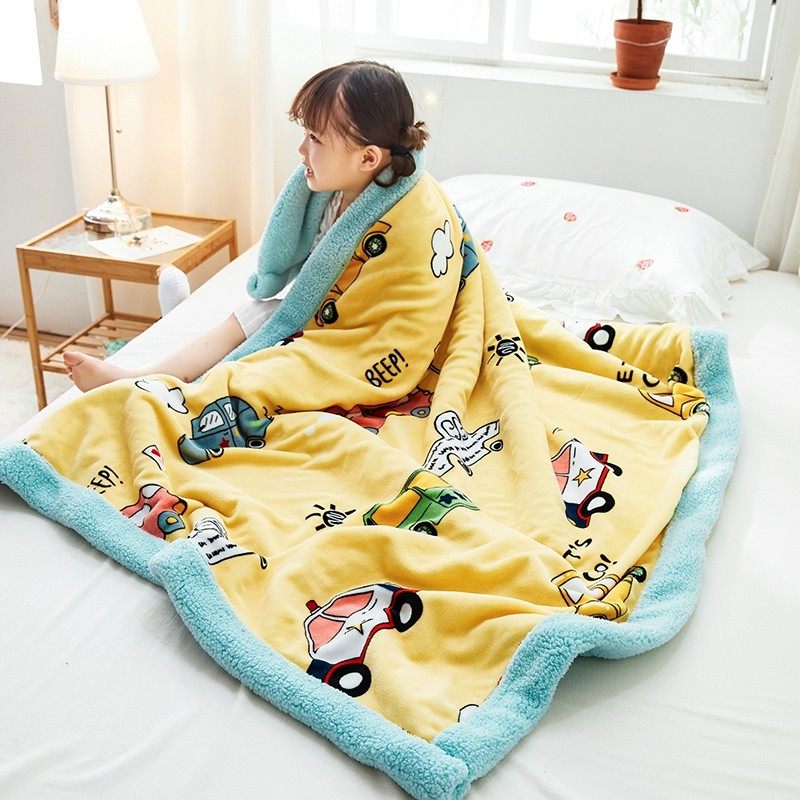 赫拉牛奶绒贝贝绒三层夹棉毛毯空调毯多功能盖毯午睡毯办公室可爱