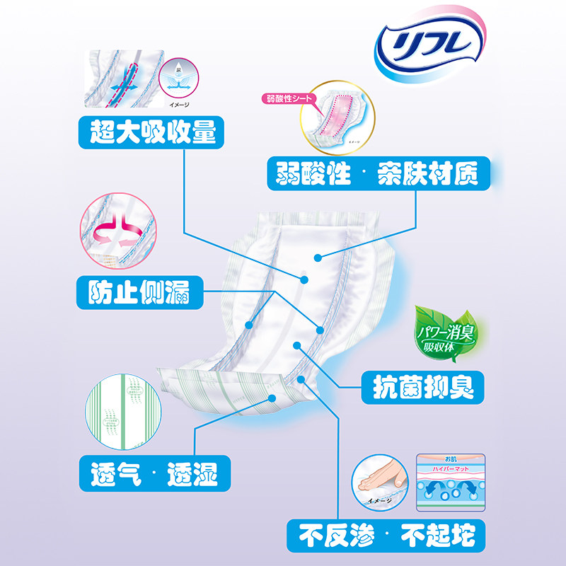 Livedo日本进口成人纸尿片专为男女老人设计,采用日本先进吸收技术,具备超强吸收能力,单晚可应对多达9次排尿,有效防止渗漏。产品内含高分子吸水材料,快速锁水并减少反渗,保持表面干爽舒适。加宽加长的隔尿垫设计,贴合身体曲线,夜间使用更安心。表层柔软亲肤,减少摩擦刺激,适合长时间卧床或行动不便的老年人使用。防漏隔边有效阻挡侧漏,搭配透气底膜,减少闷热感,呵护肌肤健康。Livedo以高品质和人性化设计,为失禁人群提供贴心、尊严的护理解决方案,是家庭护理的理想之选。