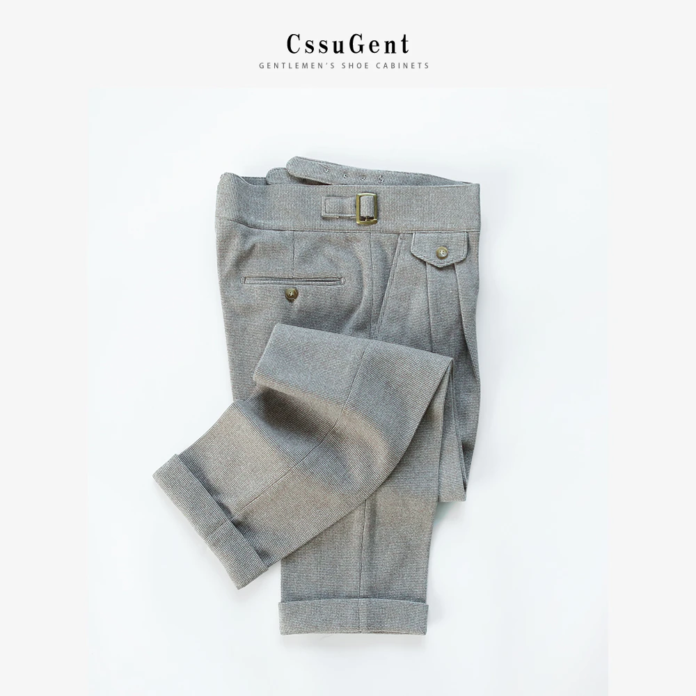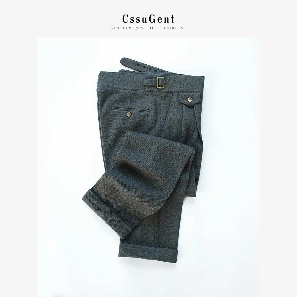 淘宝高定秋冬加厚毛呢那不勒斯廓尔格西装裤男士复古意式休闲商务长裤