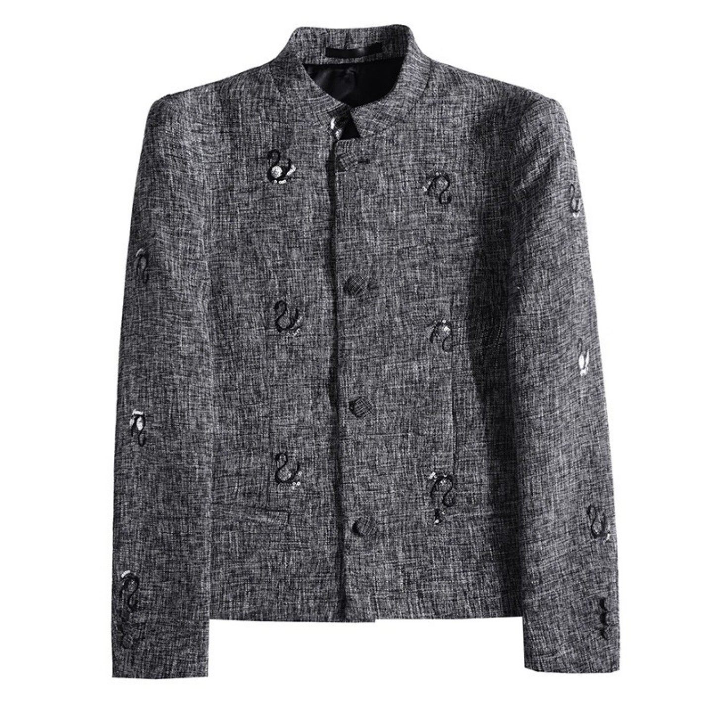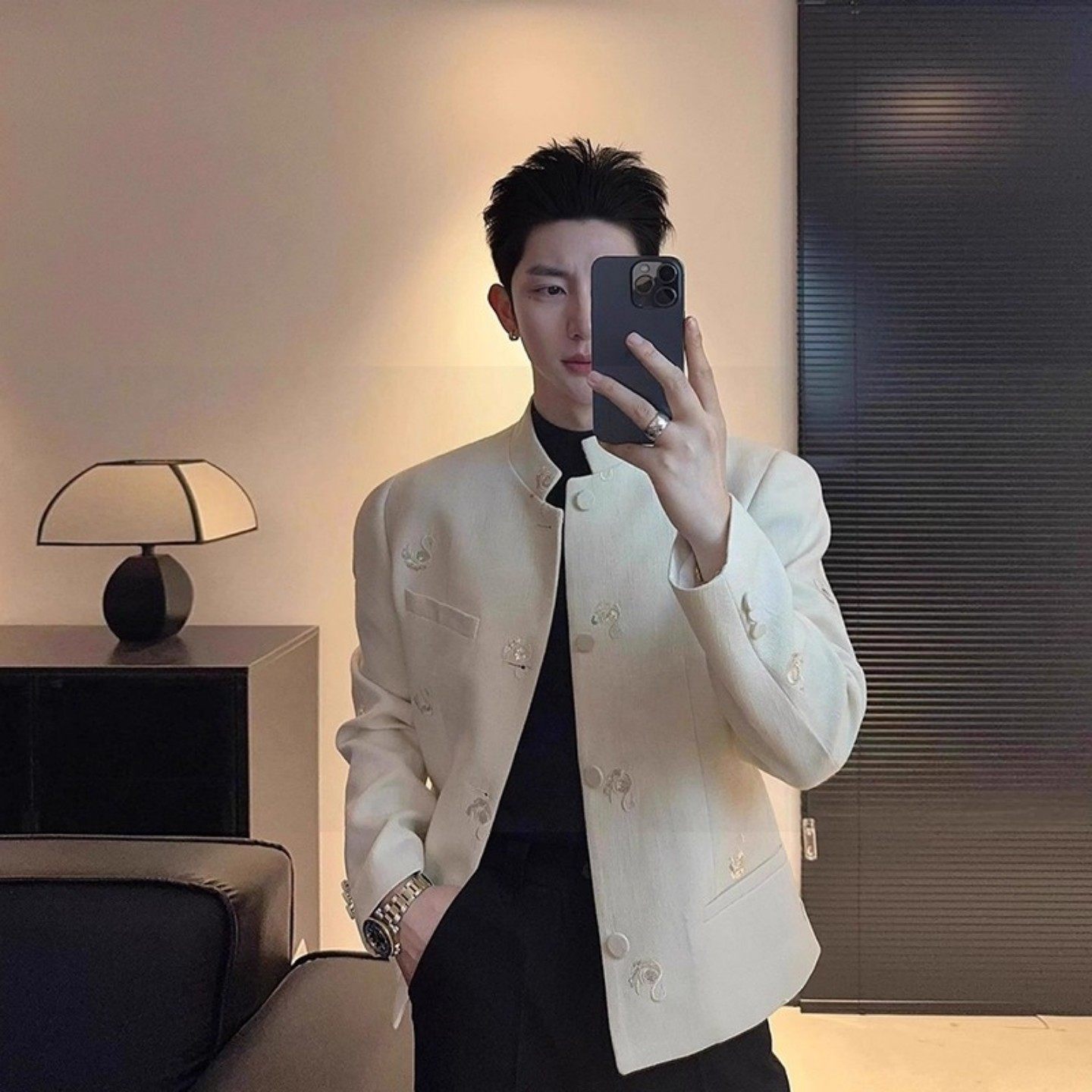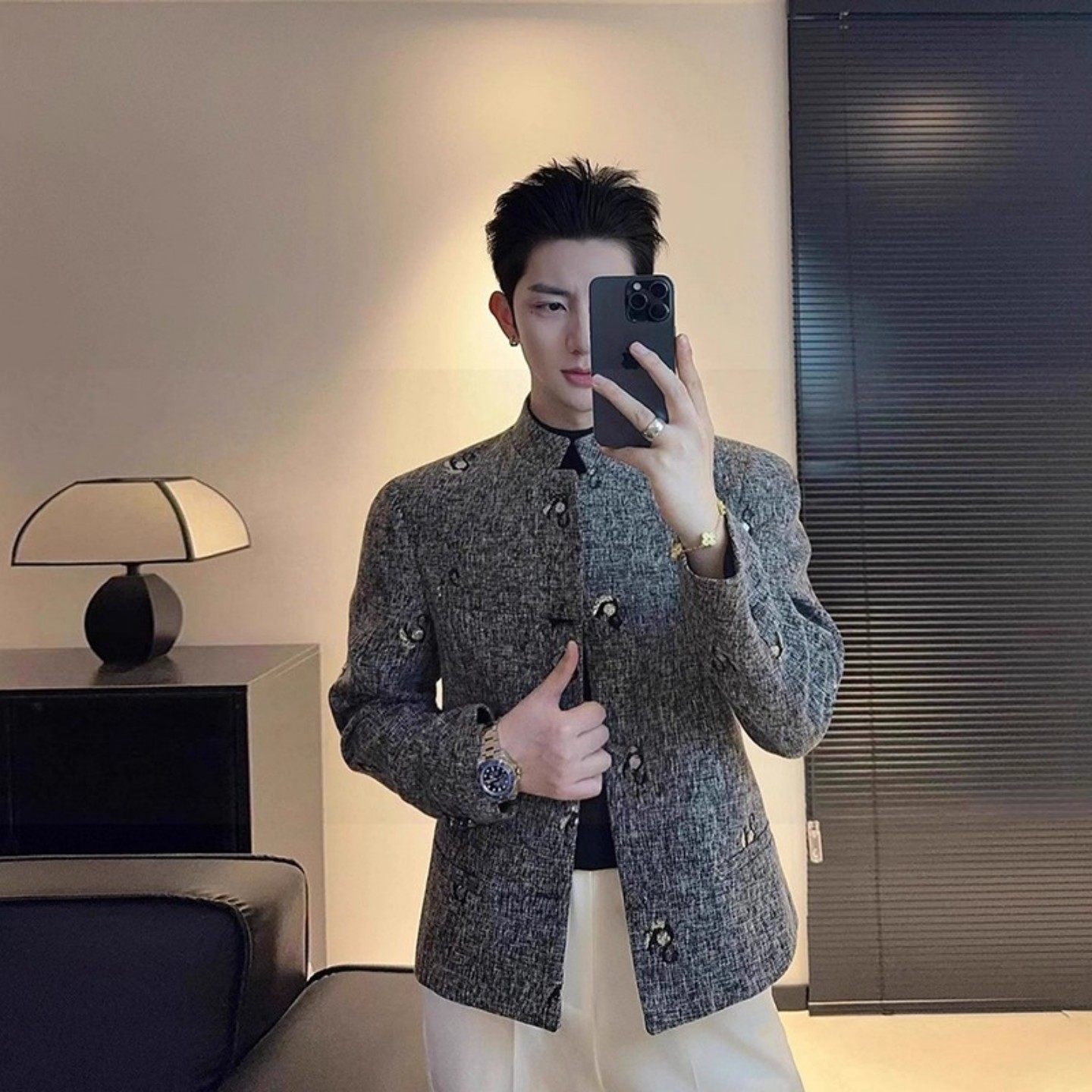 天猫小香风西装轻熟雅痞风男装新中式立领小西服潮牌痞帅垫肩单西外套