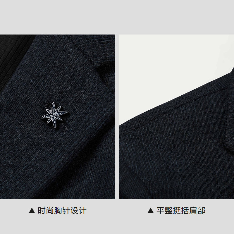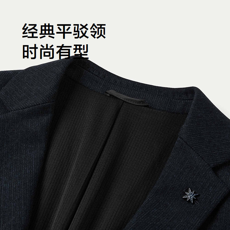 HLA/海澜之家2025秋冬新款绒感弹力休闲西服,融合商务与时尚,专为现代男士打造。采用高品质绒感面料,触感柔软,兼具良好弹力,穿着舒适自在,活动无束缚。经典平驳领设计,线条利落,彰显稳重气质;精致花纹点缀,打破传统沉闷,增添一抹秋冬新时尚。立体剪裁贴合身形,商务场合干练有型,休闲时刻亦不失格调。多场景百搭,轻松驾驭办公、约会或聚会。海澜之家匠心工艺,细节考究,是男士衣橱不可或缺的秋冬单品,演绎从容自信的都市风尚。
