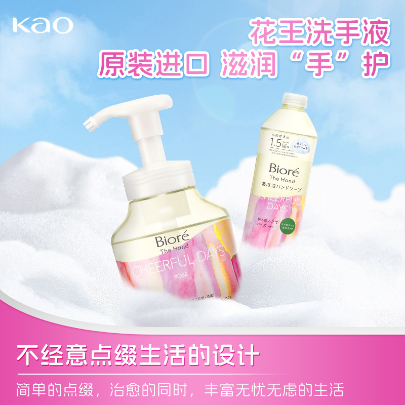 天猫KAO花王碧柔进口泡沫洗手液非免洗倍润玫瑰香成人家用家庭补充装