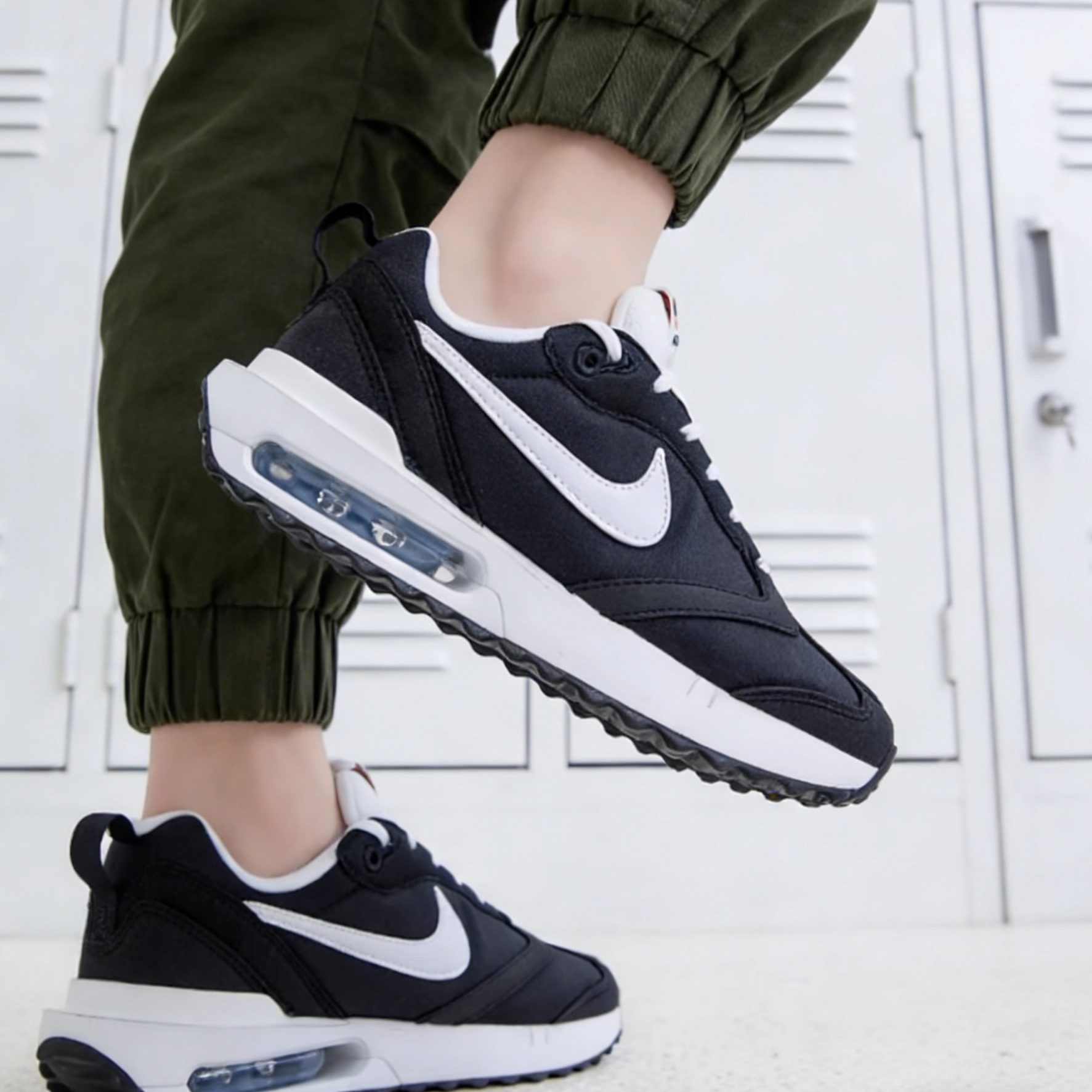 Nike Air Max Dawn 男款休闲跑步鞋(型号:DJ3624-001)以经典复古设计融合现代舒适科技,打造百搭黑色潮流单品。鞋面采用轻盈帆布材质,搭配透气网眼设计,兼顾质感与透气性。中底搭载Nike Air缓震技术,提供出色回弹与全天候舒适脚感,适合日常通勤与轻度运动。低帮剪裁灵活自在,搭配橡胶外底增强耐磨与抓地力。简约黑色调搭配标志性Swoosh logo,彰显低调运动风格,轻松驾驭街头、运动与休闲多种场景,是追求舒适与时尚男士的理想之选。