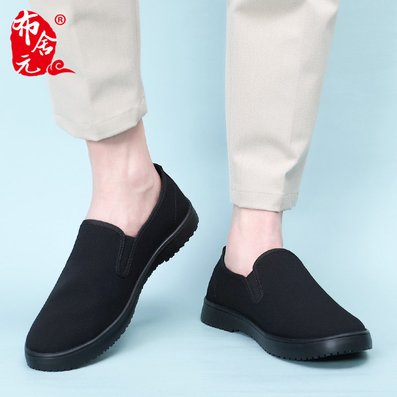 天猫春季老北京布鞋男正品官方软底全黑休闲工作板鞋一脚蹬帆布鞋开车