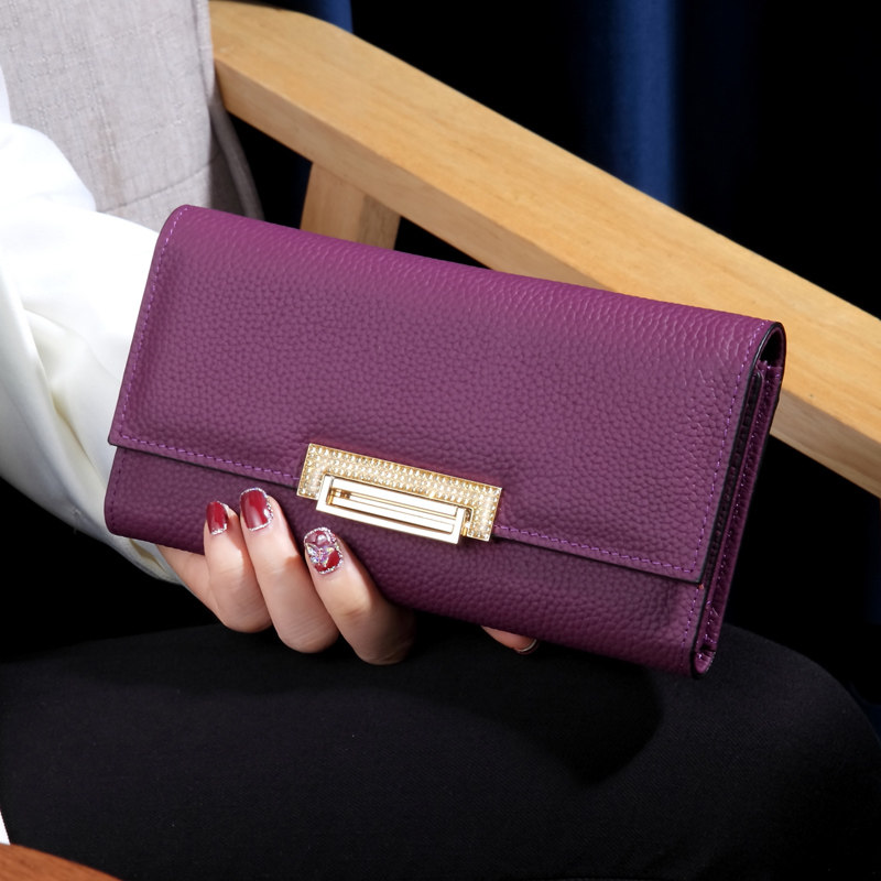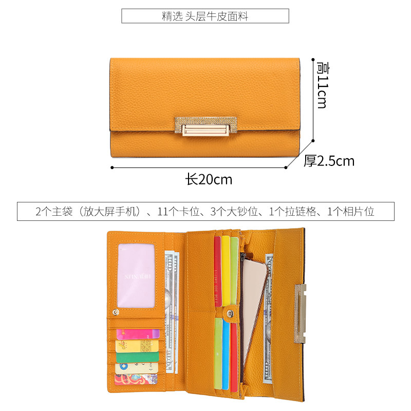 天猫高档纯牛皮三折大容量钱包女百搭2025秋冬新款真皮手拎钱夹放手机