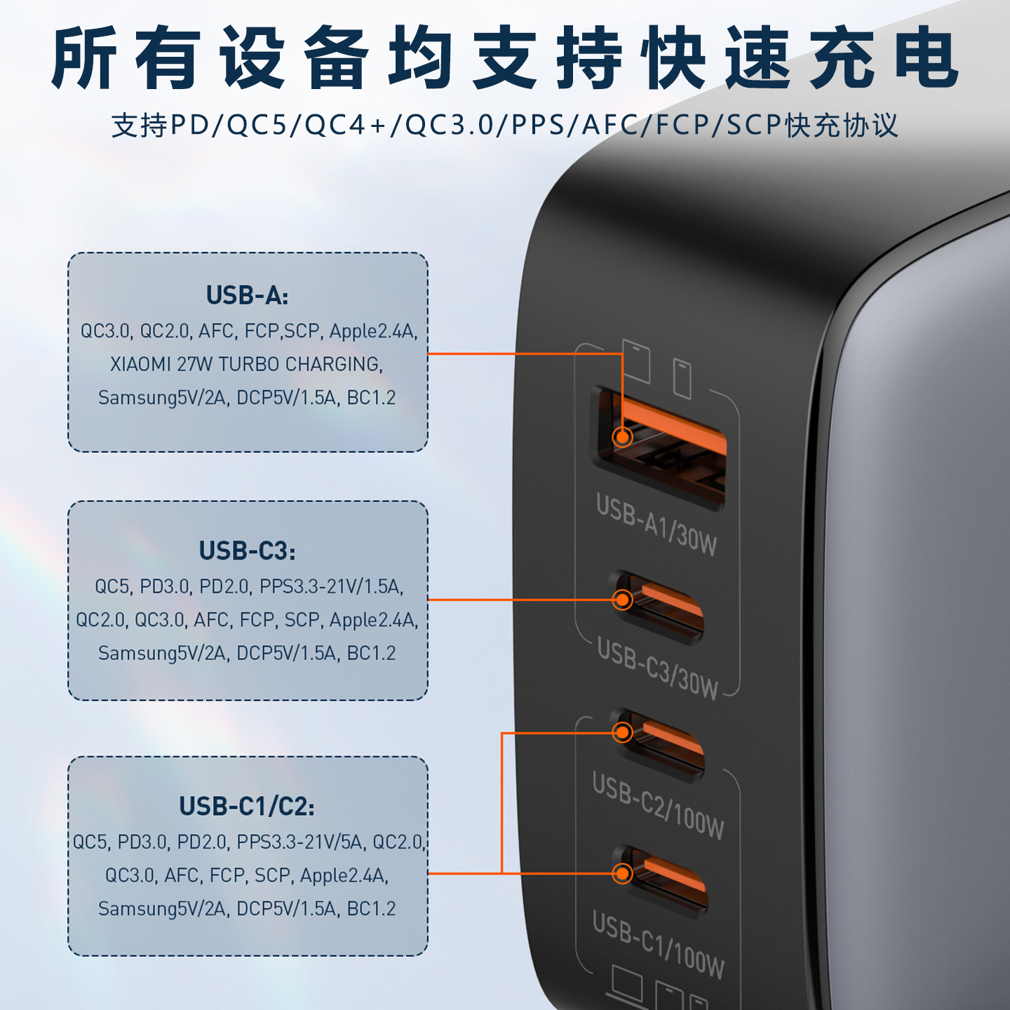 LDNIO 100W氮化镓快充头采用先进GaN技术,体积小巧却动力强劲,支持高达100W输出功率,兼容PD、QC等多种快充协议。配备Type-C接口,可为iPhone 17、笔记本电脑、平板及手机等设备快速充电,充电效率显著提升。多口设计支持同时输出,满足多设备充电需求。英标插头适配全球电压,出行携带便捷。安全方面具备过压、过流、过热等多重保护,使用更安心。无论是日常办公还是差旅出行,LDNIO 100W氮化镓充电器都是高效、便携、通用的理想充电解决方案。
