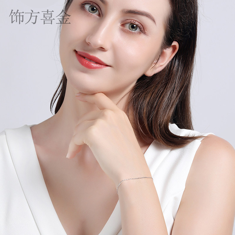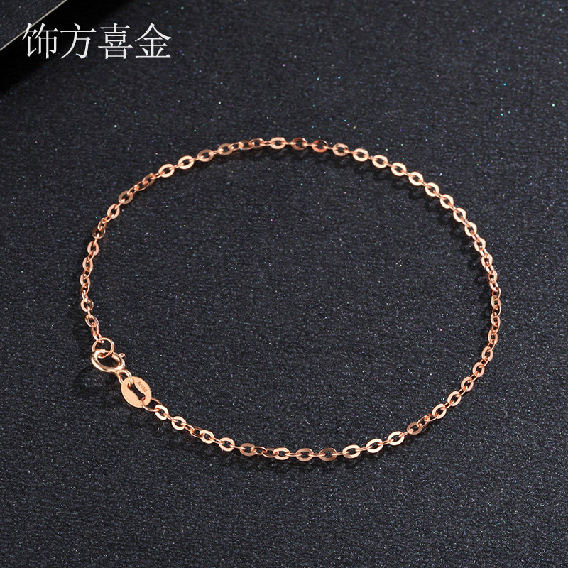 天猫18K金手链女O字链彩金闪O手饰AU750黄金玫瑰金白金手串脚链穿珠子