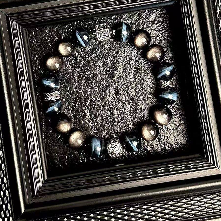 情侣款银曜石蓝虎眼手链,融合神秘银曜石的辟邪护体与蓝虎眼的招财助运之效,寓意爱情坚固、事业顺遂。深邃曜黑中泛着幽蓝光晕,彰显低调奢华气质,男女皆宜。天然矿石能量稳定,长期佩戴可增强自信、提升专注力,助力感情升温与财运亨通。精工打磨,质感细腻,搭配可调节链条,舒适贴合手腕。无论是日常搭配还是作为纪念日、情人节礼物,皆显心意与品味。作为文玩手饰优选,兼具收藏与佩戴价值,是情侣间传递祝福、守护彼此的珍贵纪念品,值得拥有。